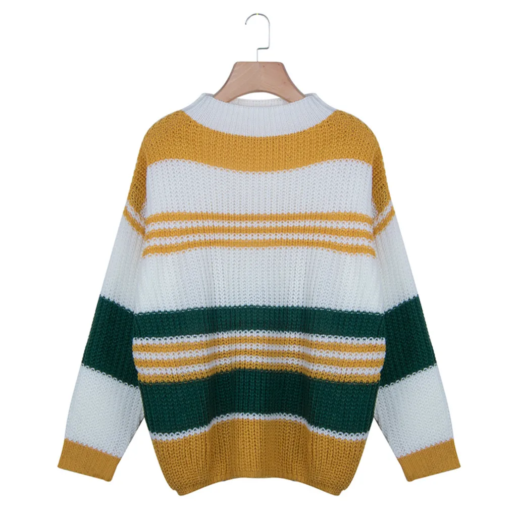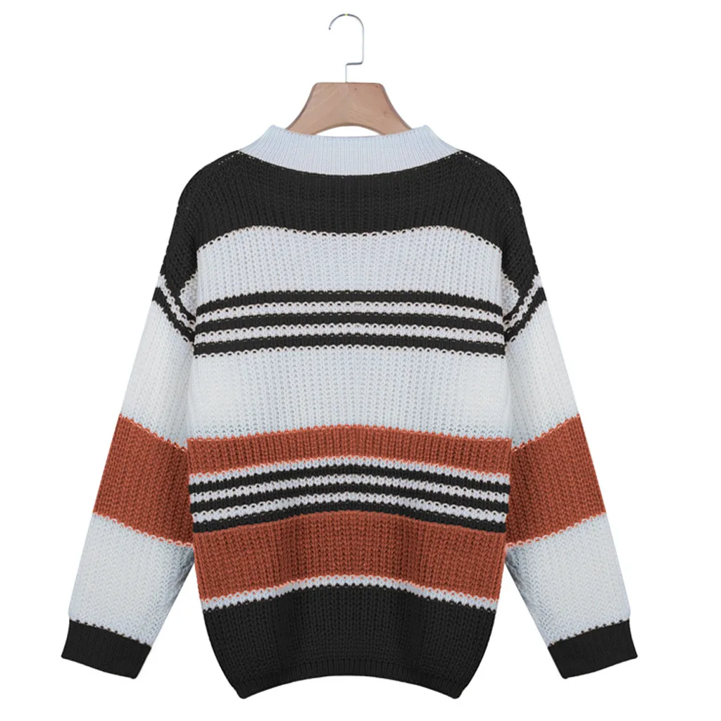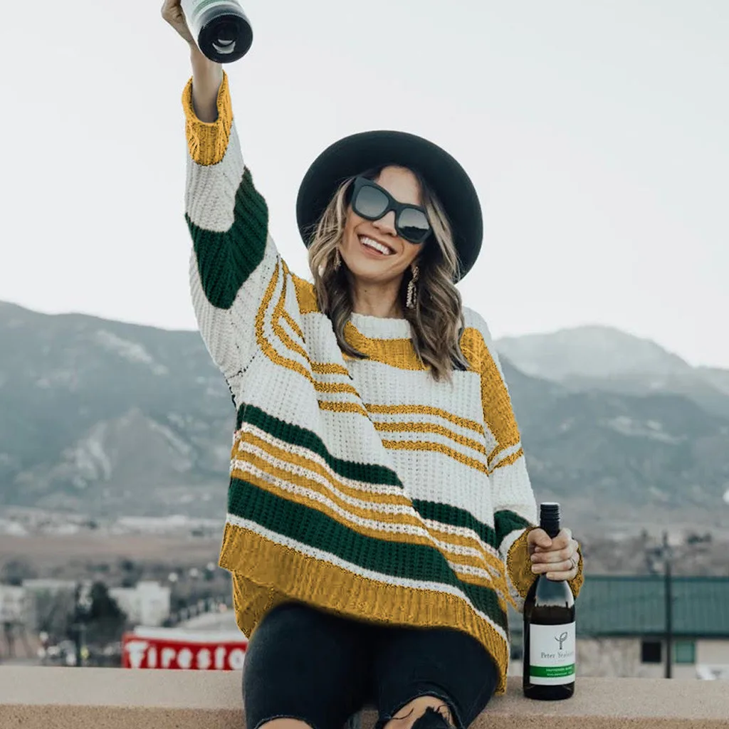 Женский модный полосатый вязаный свитер с круглым вырезом и длинным рукавом, свободная блузка