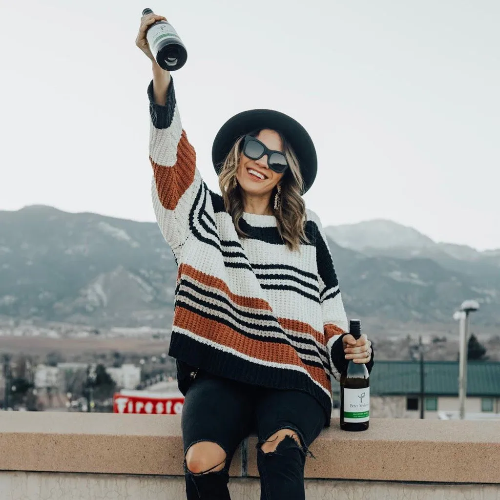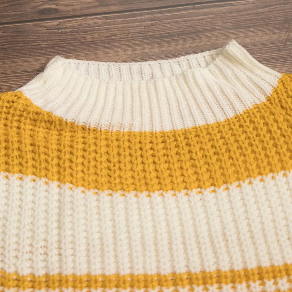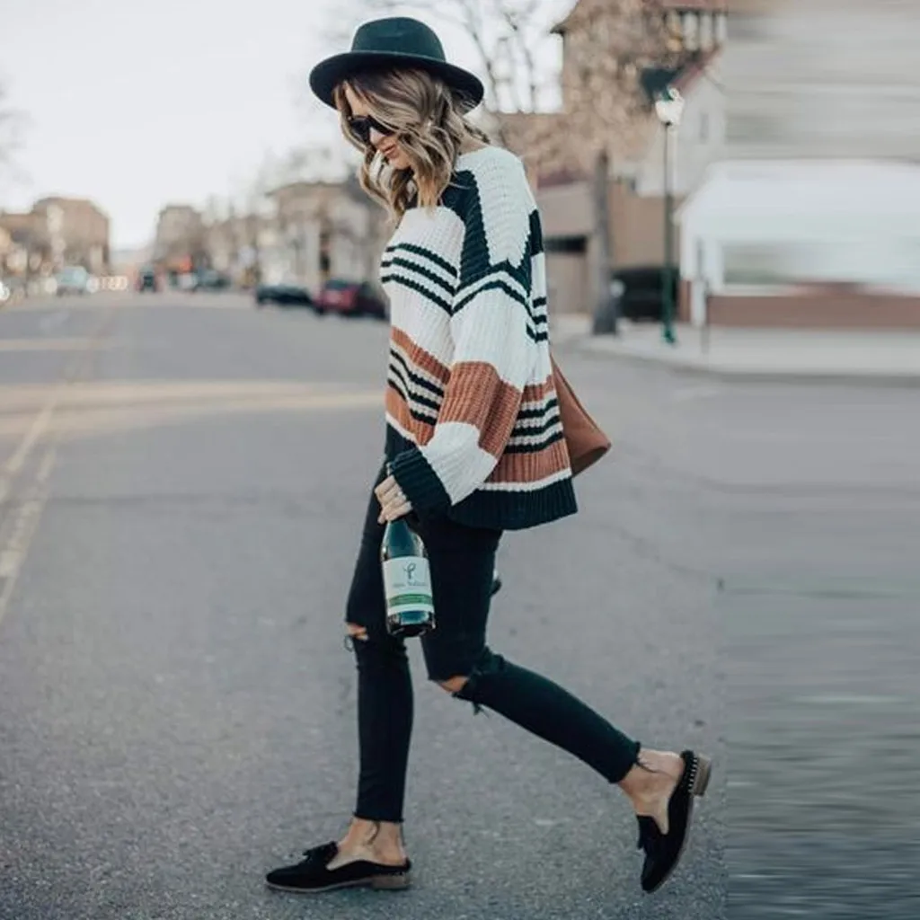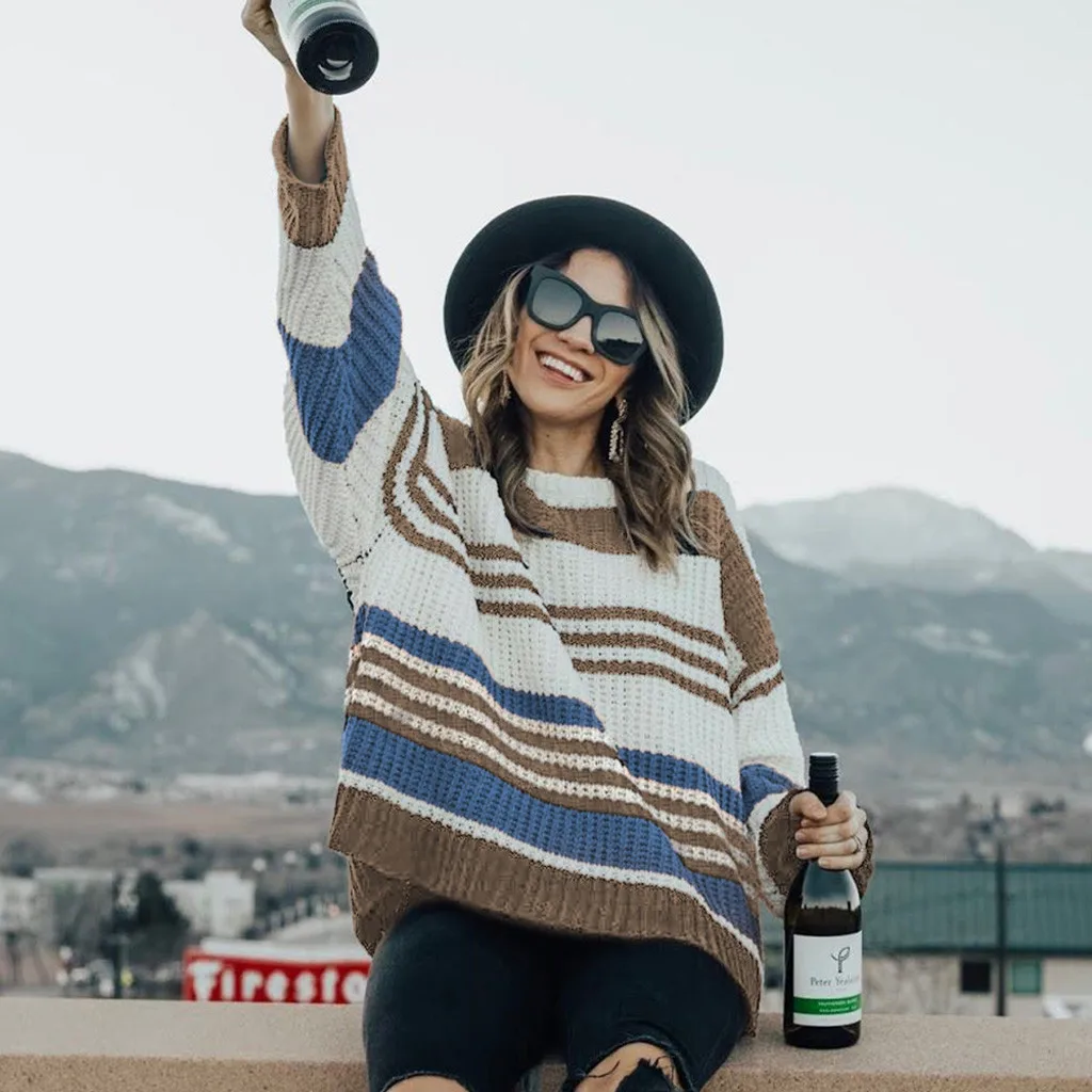 Женский модный полосатый вязаный свитер с круглым вырезом и длинным рукавом, свободная блузка