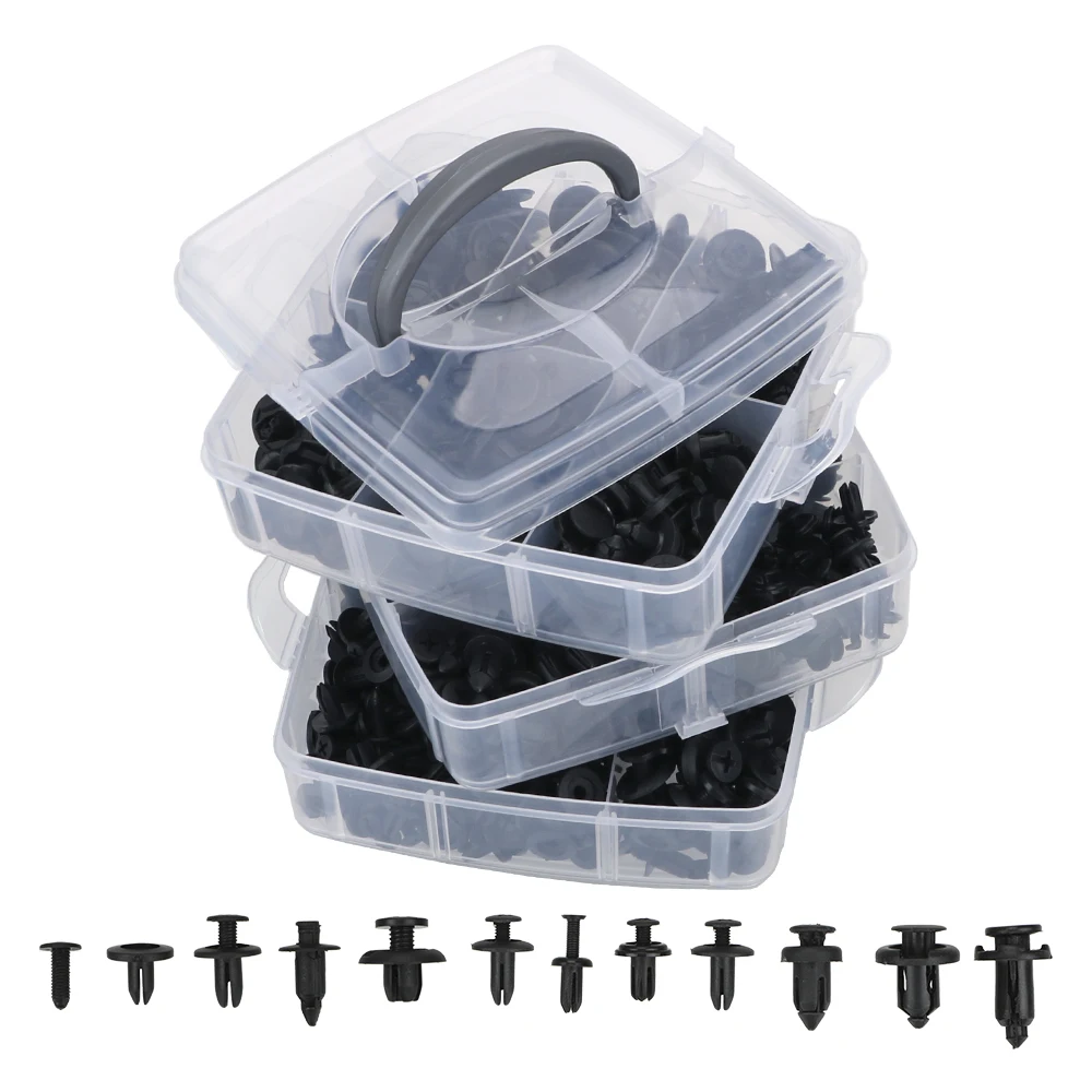 Особенности: 100% Фирменная Новинка и высокое качество Широко используется для крыльев, бамперов, дверей и другой поверхности автомобиля. Высокое качество, прочный пластик, длительный срок службы. Спецификация: Материал: ПВХ Количество: 620 шт./кор. Цвет: черный Размер: как на фото Применимые модели: обычные Комплекпосылка ция: 1x620 шт./коробка, набор зажимов для крепления