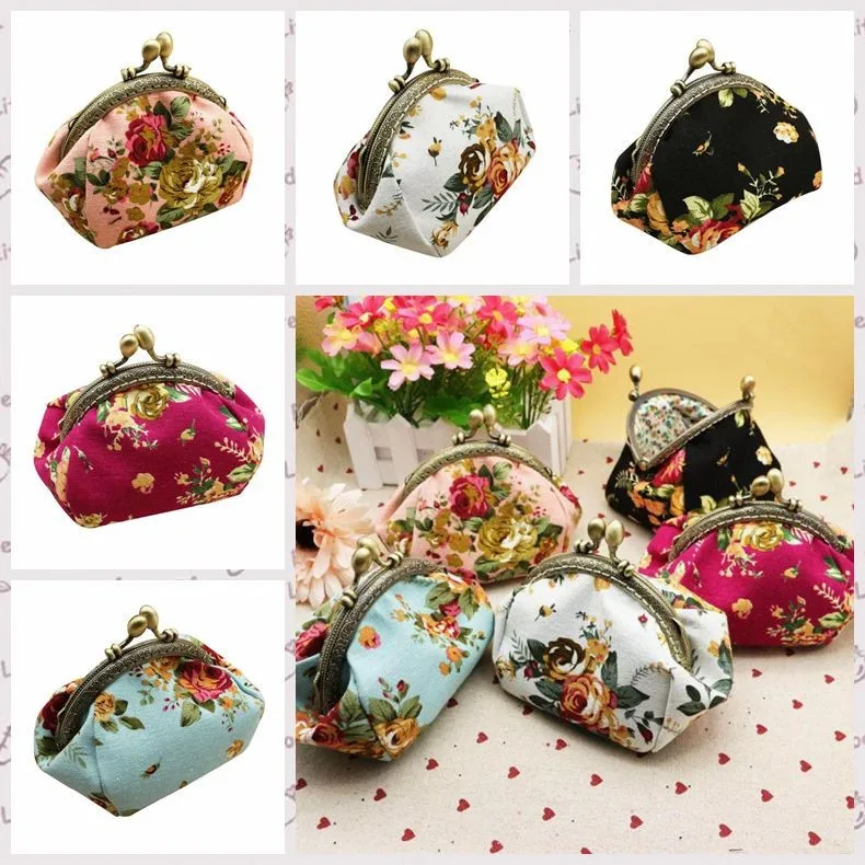1X Женский винтажный маленький кошелек с цветочным принтом в стиле ретро, кошелек-клатч с застежкой(Без Мелкая фасовка)