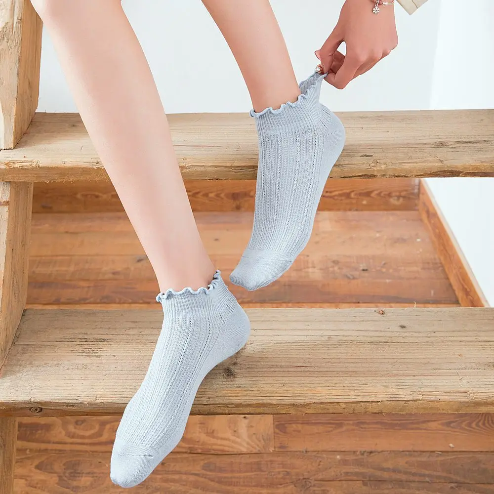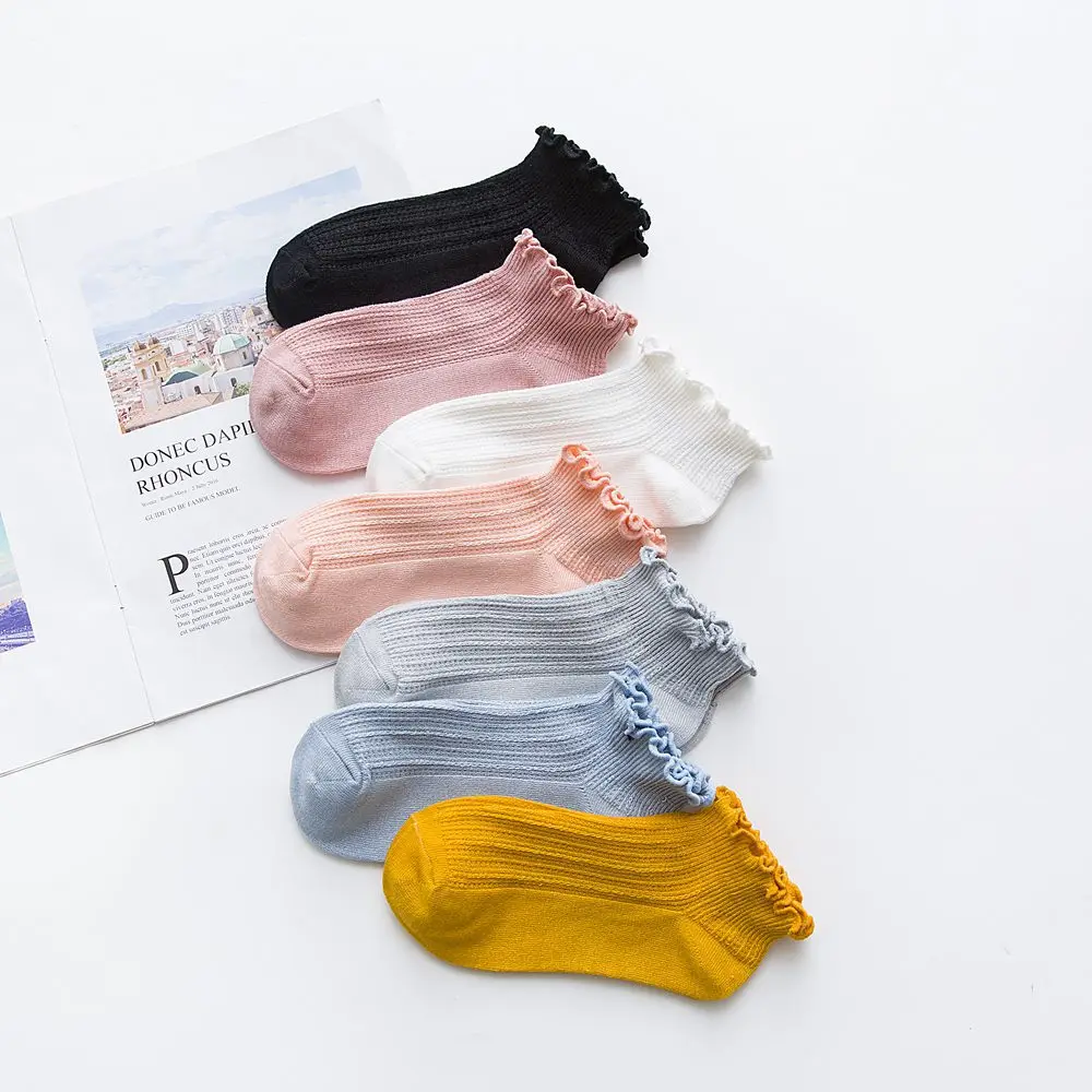 DOIAESKV/модные мягкие хлопковые женские носки с оборками однотонные милые носки милые удобные милые носки принцессы с оборками для девочек