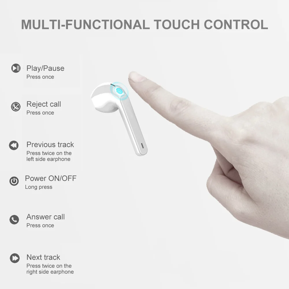 Особенности: Встроенная версия BT5.0, обеспечивает высокую скорость передачи данных, стабильное соединение и низкое энергопотребление. Многофункциональное управление Tou-ch позволяет принимать звонки, переключать песни или регулировать громкость, просто прикоснувшись к этим беспроводным наушникам в ухо, не вынимая ваши смартфоны из кармана. Встроенный высокочувствительный микрофон обеспечивает высокое качество четкого звука и отличный опыт общения с вами. Беспроводная конструкция с двумя ушами, разделение левого и правого ушных каналов. Вы можете использовать гарнитуру исключительно или использовать их парами. Аккумулятор 35 мАч в каждом наушнике обеспечивает 2-3 часа работы. Заряжается автоматически в зарядном корпусе на 300 мАч, что позволяет заряжать две гарнитуры примерно 3 раза.