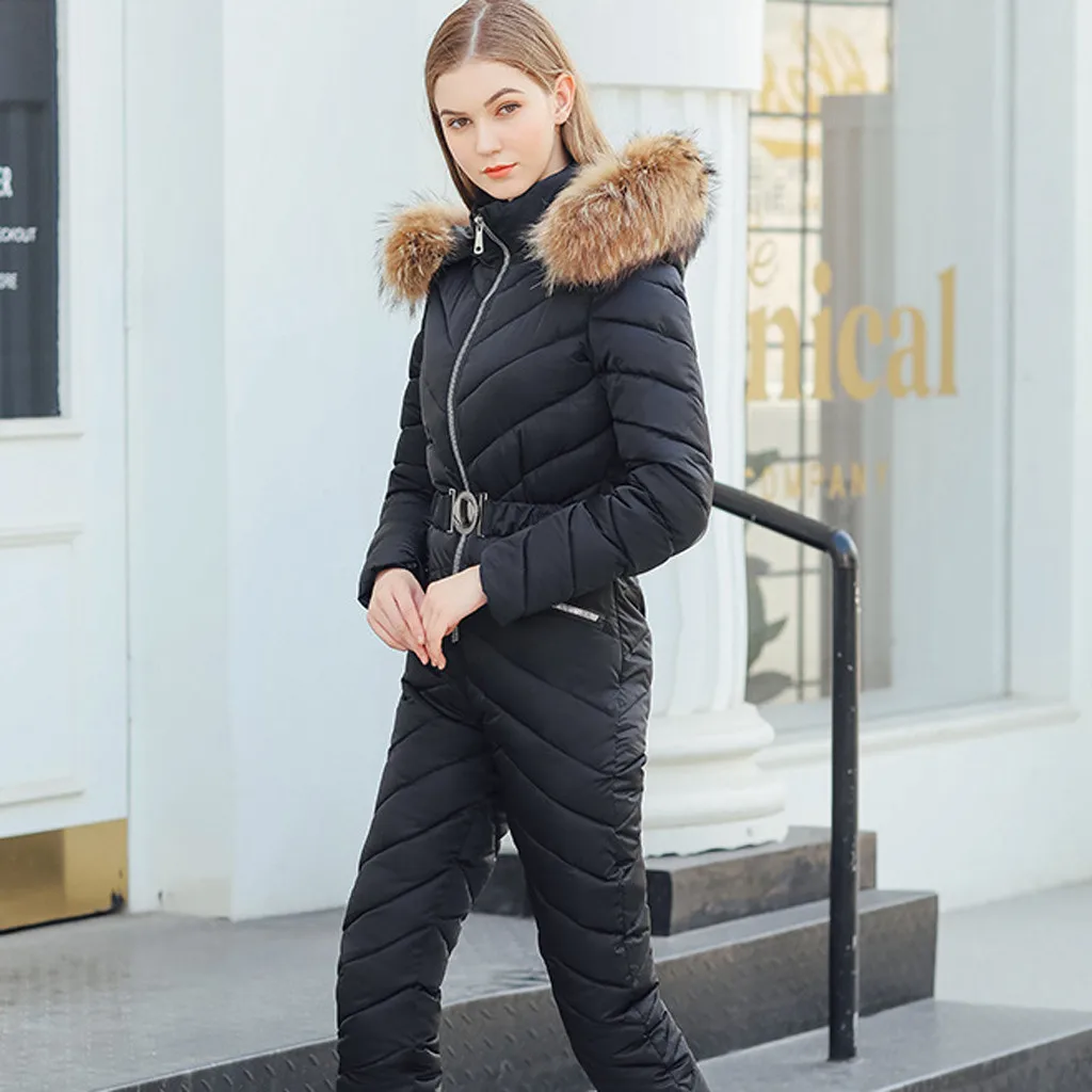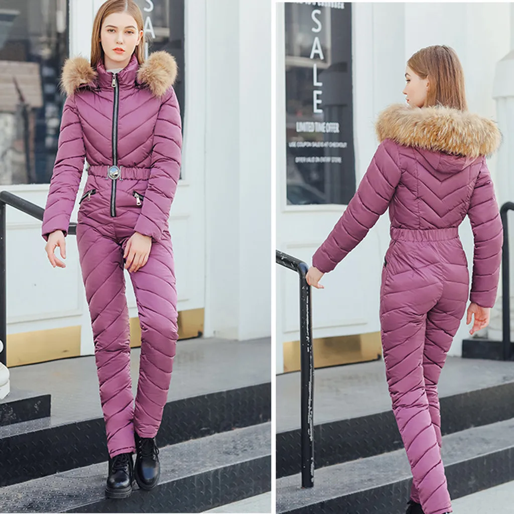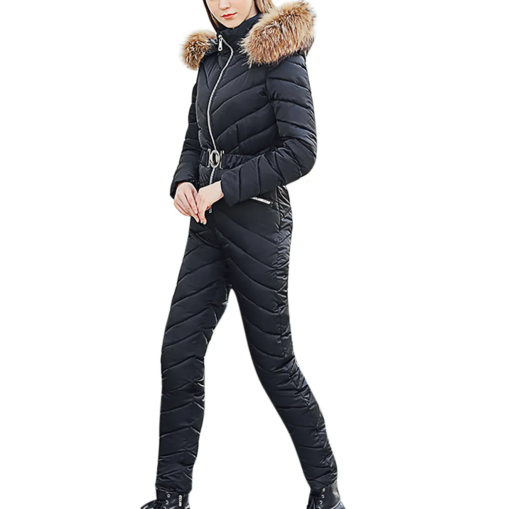 Женский зимний плюшевый хлопковый комбинезон с капюшоном и карманами на молнии, лыжный костюм
