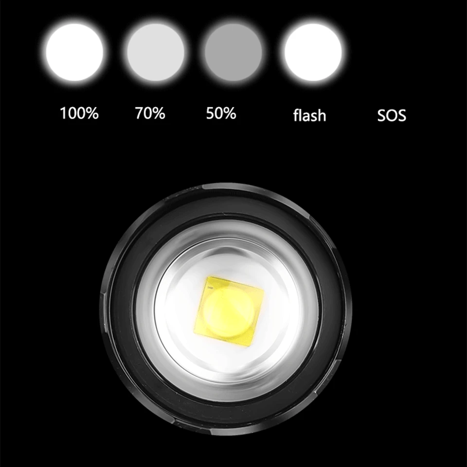 • Режим: 5 режимов (100%-70%-50%-стробоскоп-SOS)