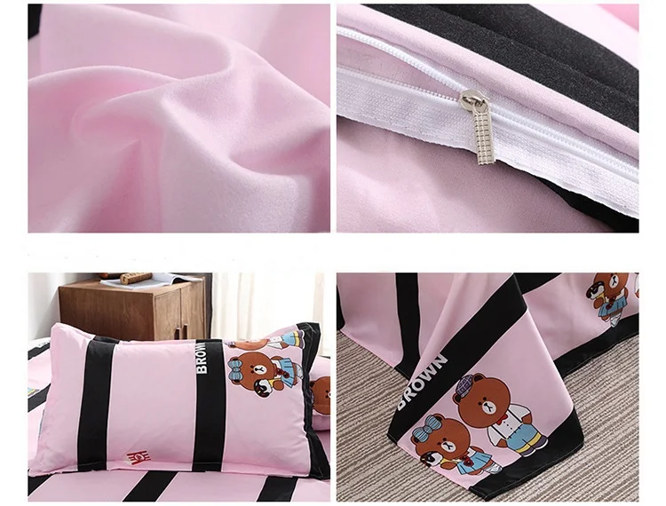 New Aloe Cotton Bed Sheets Four-piece King Size Bedding Set Quilt Romantic Than Heart Printing Pillow Duvet Cover Brief Style