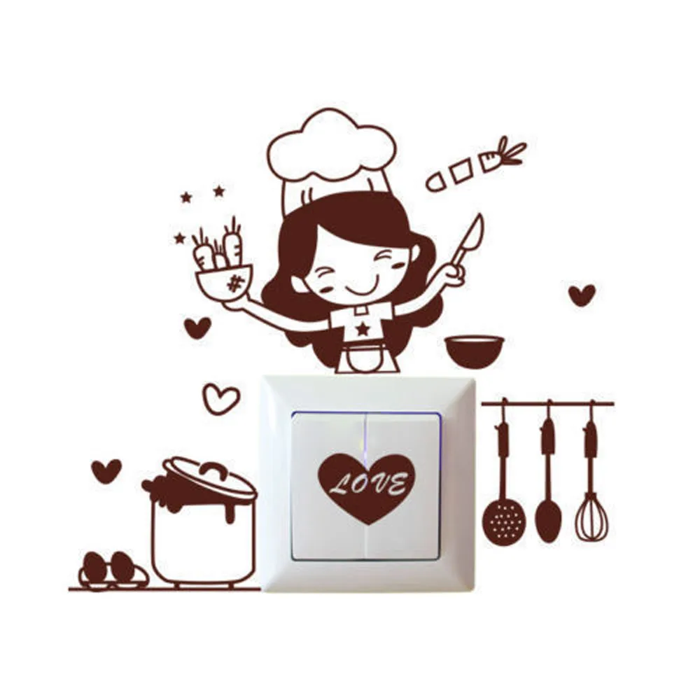 Настенный настенный выключатель, настенный выключатель, кухонный светильник, милый настенный переключатель, Виниловая наклейка для готовки, домашний декор #37