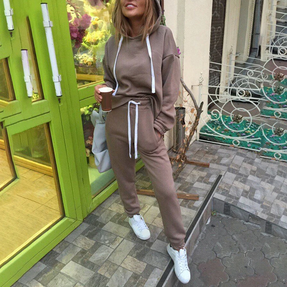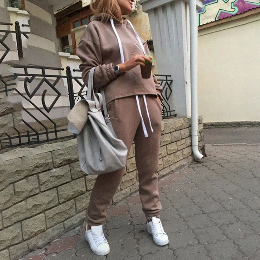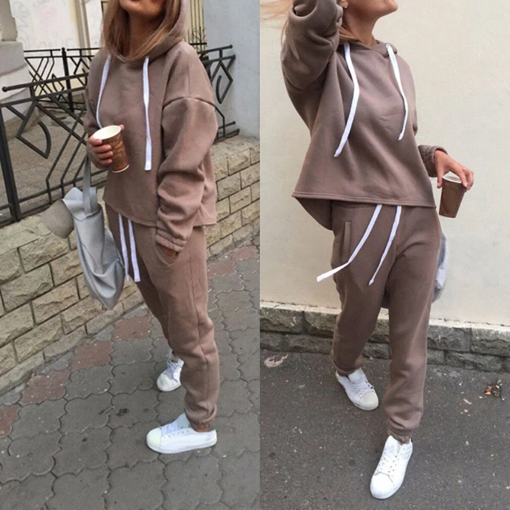 Комплект из 2 предметов, Женская толстовка, брюки, комплект одежды, теплый спортивный костюм с длинным рукавом, Женские однотонные брюки, спортивный костюм
