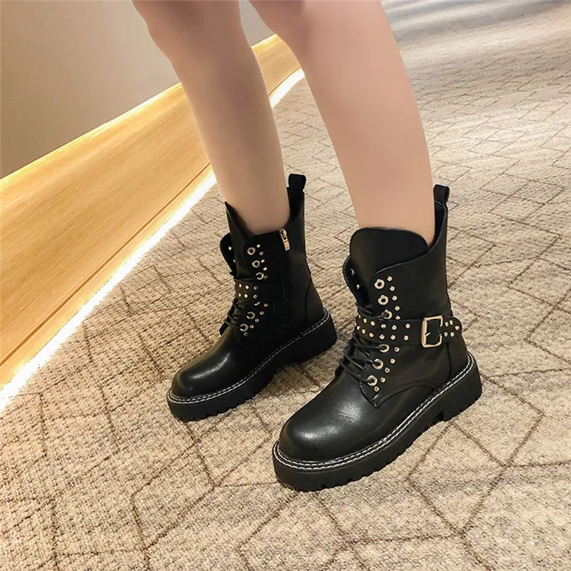 Women PU Western Knight Ladies Winter Boots Buckle Strap Short Boots Casual Shoes botas mujer invierno 2020