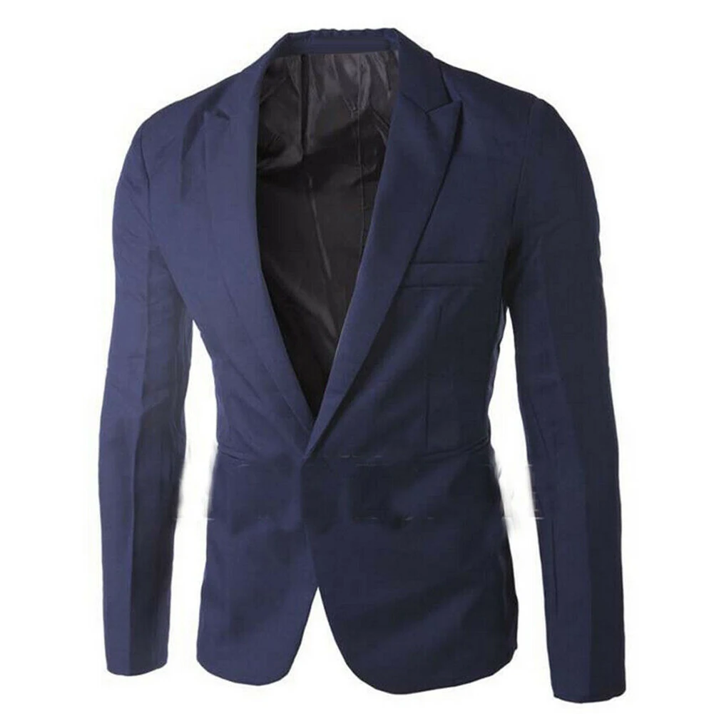 Для мужчин сплошной Цвет длинные рубашки с длинными рукавами с отворотами на одной пуговице блейзер с карманами тонкий и Fit костюм пальто