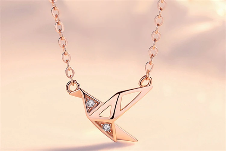 Женское колье из розового золота, элегантное колье в виде журавлей и птиц 925 пробы с голографическим принтом, длинное ювелирное изделие для подружки невесты, 2019