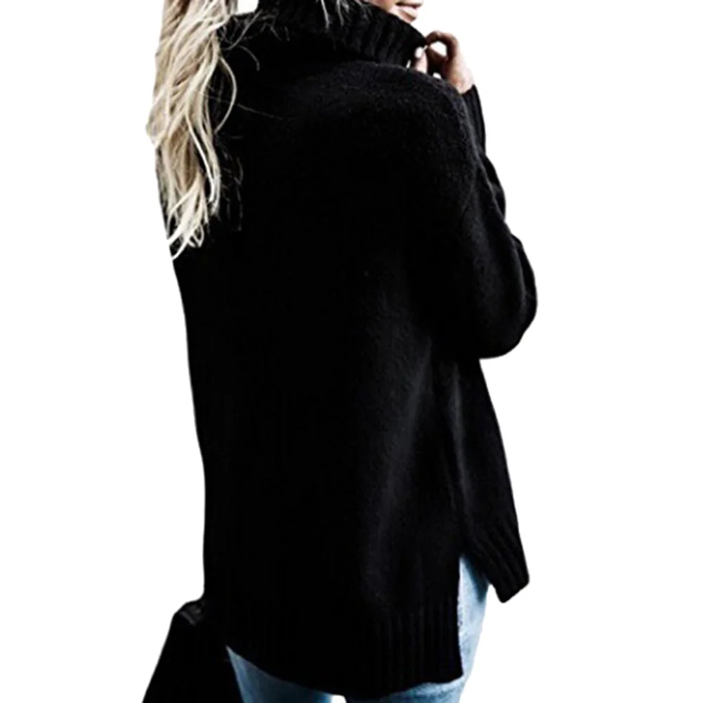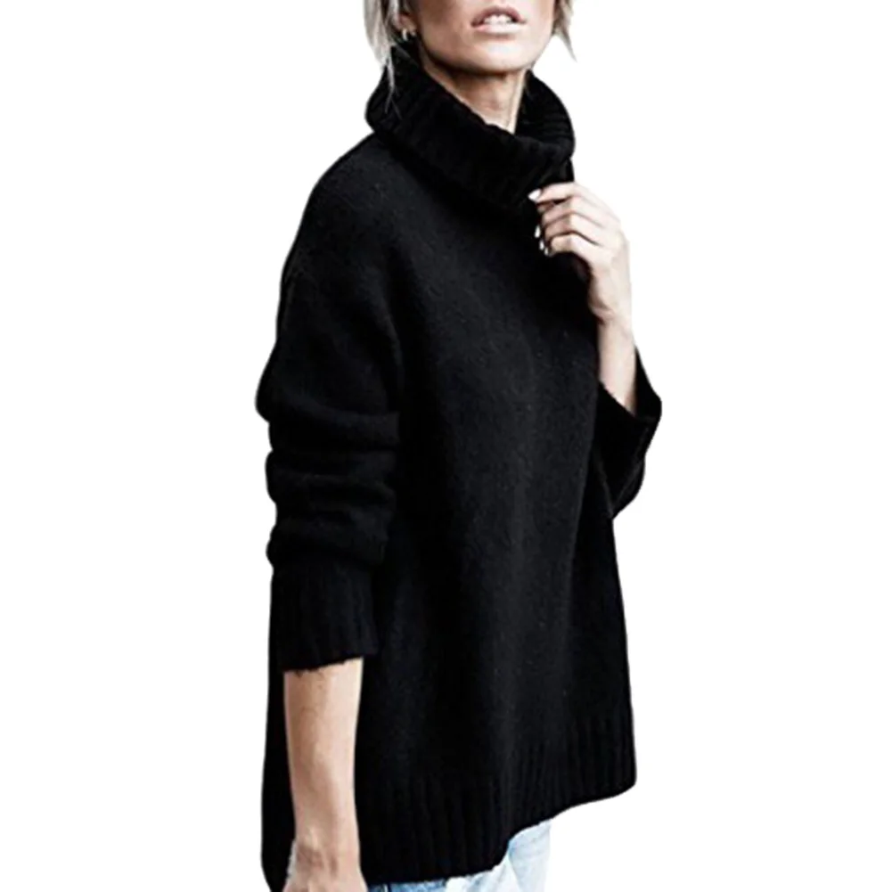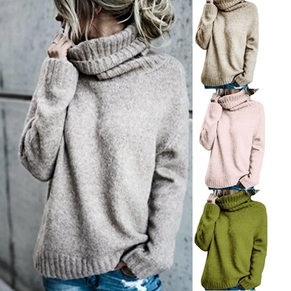 Fashion Women Autumn Long Sleeve Turtleneck Woolen Yarn Knitted Pullover Sweater
