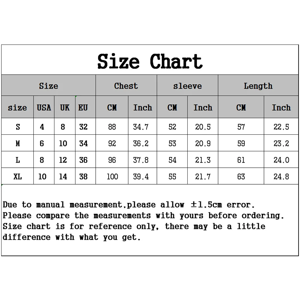 [Our Size S] Chest: 88cm/34.7", Sleeve: 52cm/20.5", Length: 57cm/22.5" (Approx.)