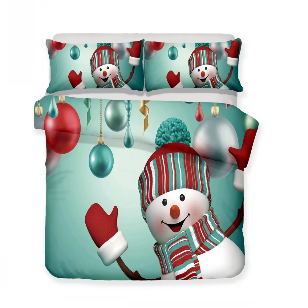 Набор постельного белья со смайликом и снеговиком из микрофибры, приятный для кожи пододеяльник, наволочка, Рождественская зеленая простыня, двойной пододеяльник для дома