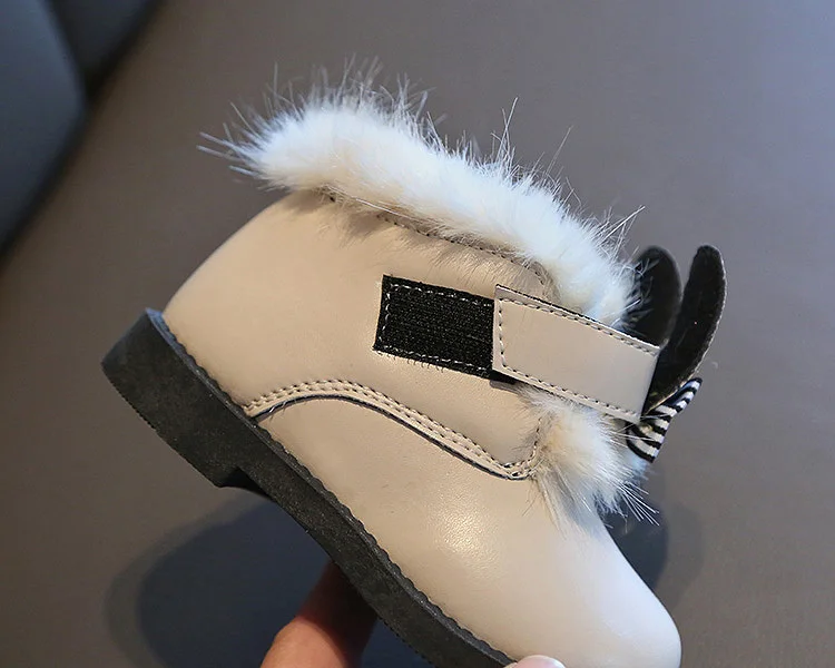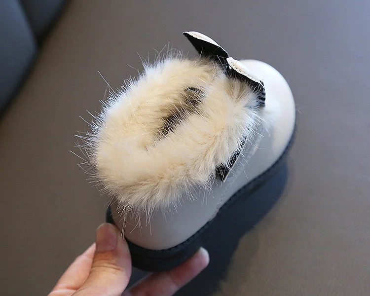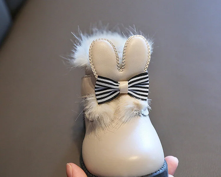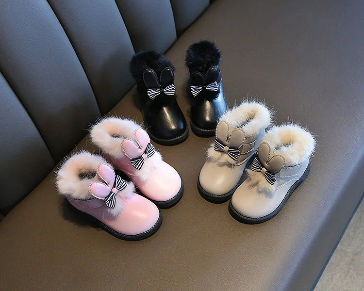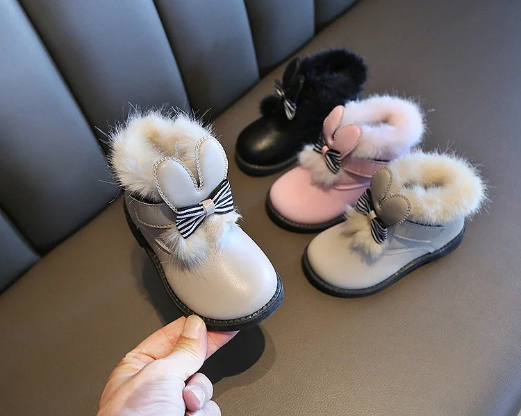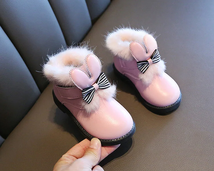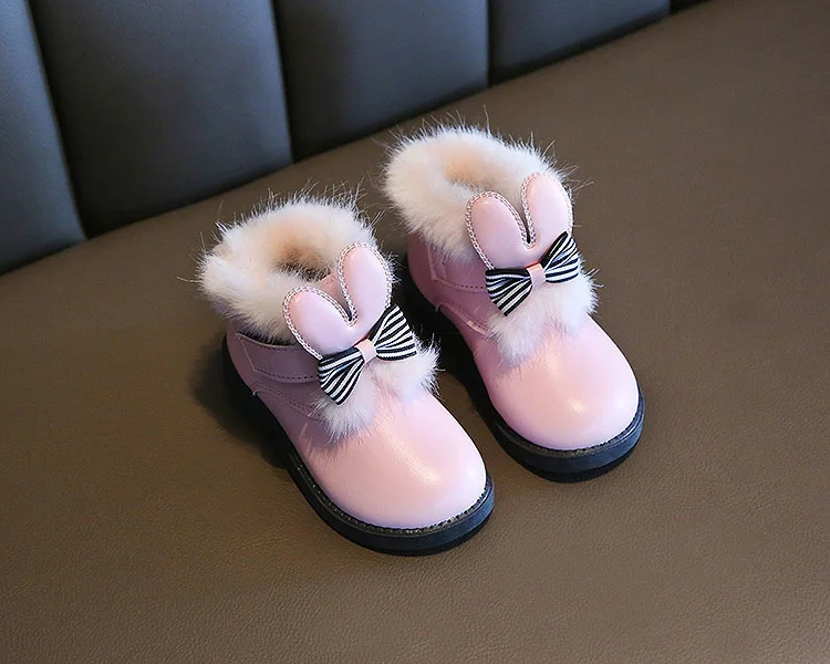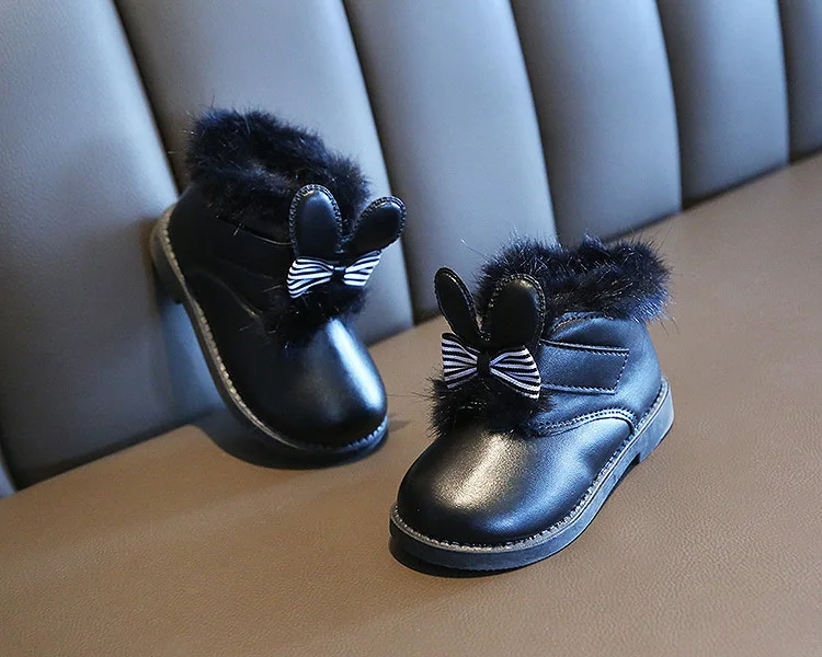 Детская обувь; коллекция 2019 года; модные зимние ботинки для девочек; теплые мягкие резиновые ботинки принцессы с бантом в виде кролика; ботинки из искусственной кожи для детей