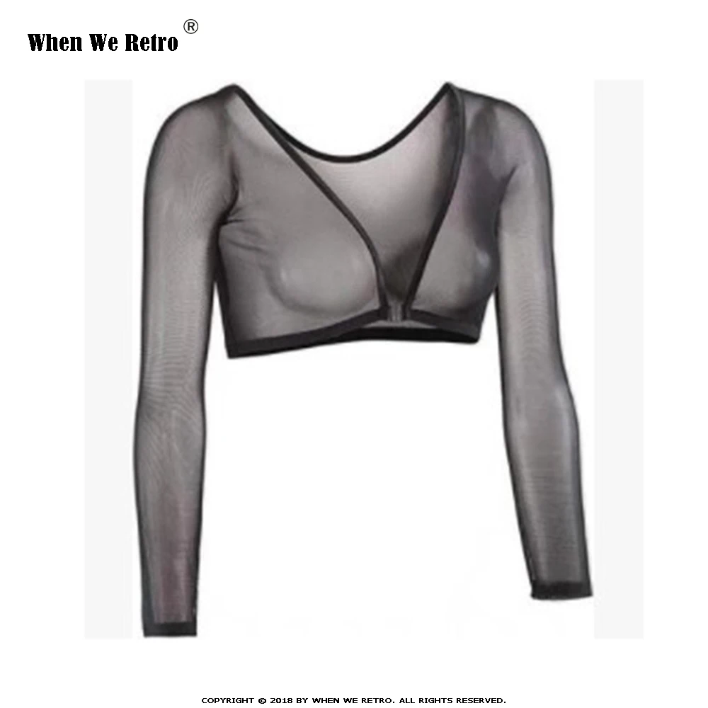 When We Retro женский модный джемпер с v-образным вырезом, топы с длинным рукавом, тонкая сексуальная футболка с v-образным вырезом, топы черного цвета, короткое пальто QY0625