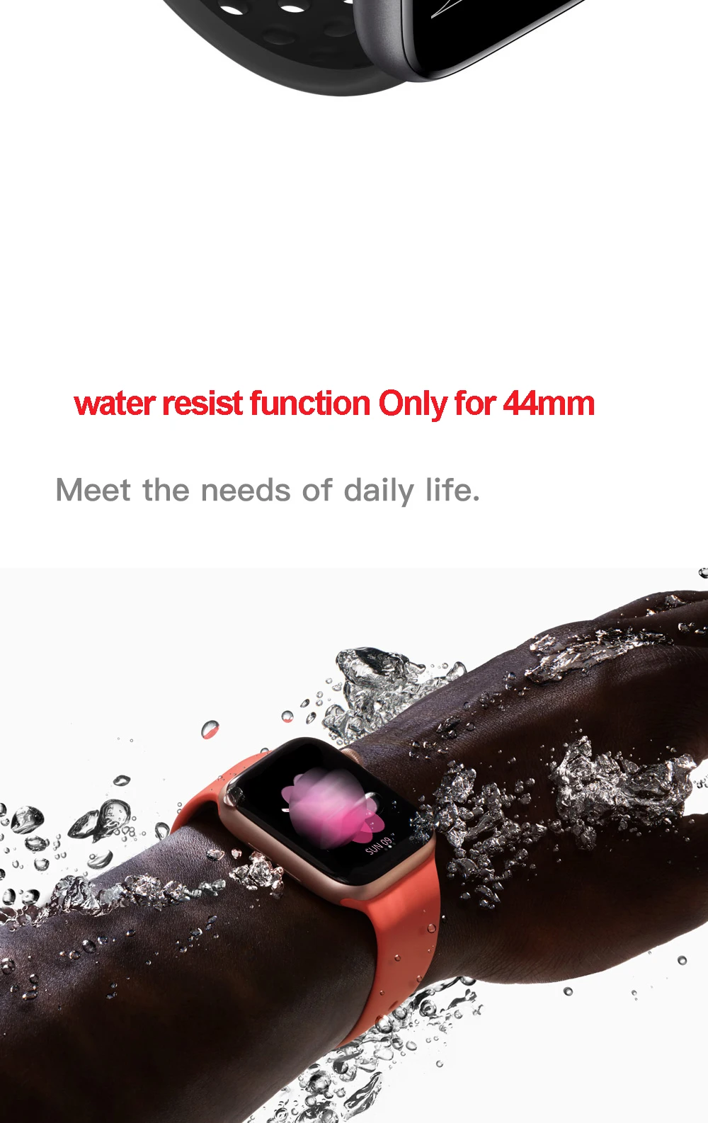 -44 мм версия имеет функцию водонепроницаемости -Сменные ремни, Миланский ремешок, нержавеющая сталь, силиконовый ремешок, кожаный ремешок; -Bluetooth циферблаты, Answe звонки, информация напоминания; -Bluetooth Музыка для управления воспроизведением музыки на мобильный телефон, звук исходит от динамика часов; Примечание: опции отключения звука и вибрации работают только для сообщений и уведомлений часов, они не отвечают на входящий телефонный звонок. -SMS Bluetooth Синхронизация push, дистанционное управление камерой телефона; Примечание: функция удаленной камеры не поддерживает iPhone для ограничения apple -Монитор сердечного ритма, монитор сна, шагомер Примечание: монитор сердечного ритма и ЭКГ не являются профессиональными, результат не является точным. Вы должны использовать профессиональный инструмент, если вам нужны более точные данные. -Водонепроницаемость: профессиональный водонепроницаемый, Примечание: не может долго оставаться в воде, не может использоваться для плавания, принятия душа, часы не могут противостоять водяному пару и пару.