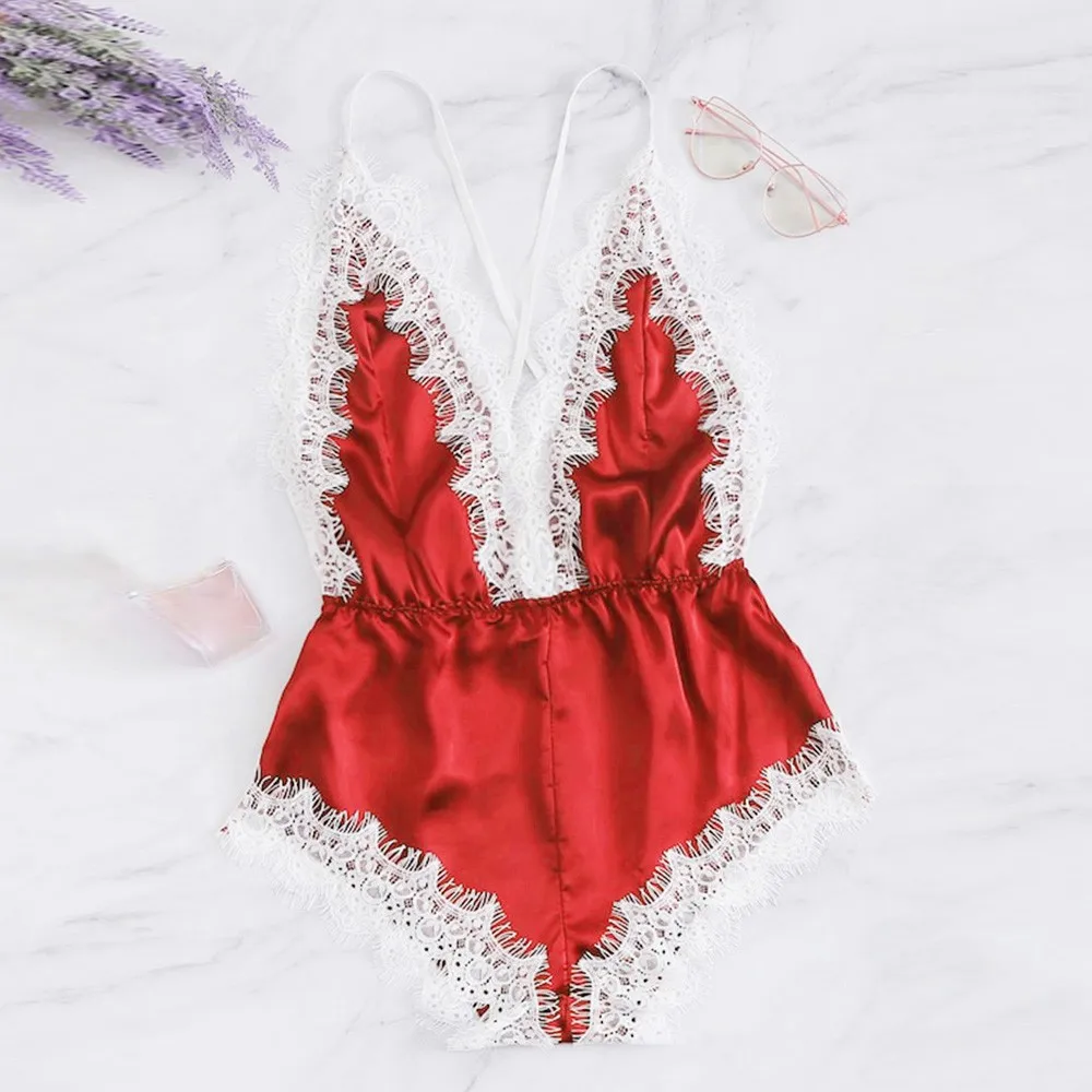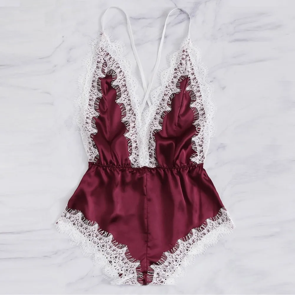 Модное женское сексуальное женское белье с v-образным вырезом, Кружевное боди, одежда для сна