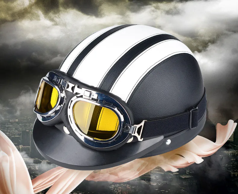 Мотоциклетный шлем с открытым лицом, Мото шлем с козырьком, УФ очки, Ретро стиль, Ретро стиль, для спорта на открытом воздухе, для мужчин и женщин, шлем для мотокросса