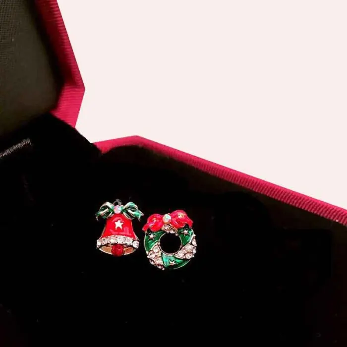Круглые серьги-гвоздики с рождественской елкой и снежинками для девочек, детские колокольчики Санта Клауса, серьги-каффы для девушек, праздничный подарок, ювелирные изделия