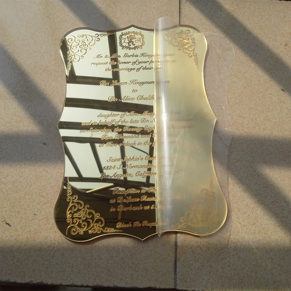 Индивидуальные 160 шт в партии 5X7 дюймов Золотые Зеркальные акриловые свадебные пригласительные карты доставка в Великобританию только