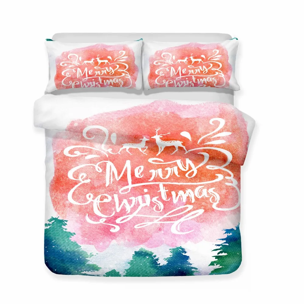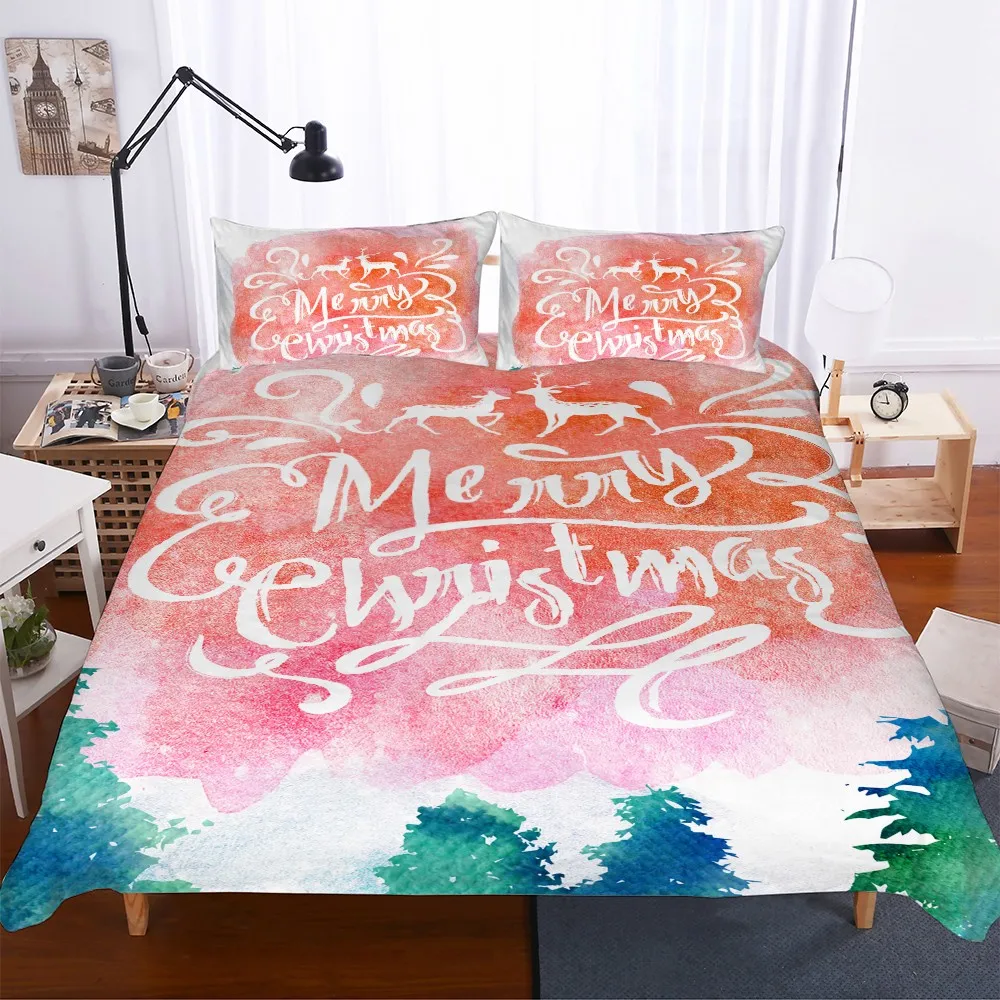 Акварельное художественное постельное белье из мягкой микрофибры, пододеяльник, наволочка с надписью «Merry Christmas», пододеяльник, односпальная двуспальная кровать, комплект покрывало