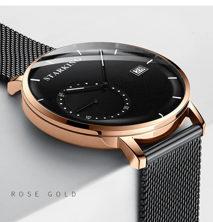 Звездное платье мужские часы стальной сетчатый ремешок Кварцевые аналоговые наручные часы 3ATM водонепроницаемые изогнутые стеклянные синие мужские часы Relogio Masculino