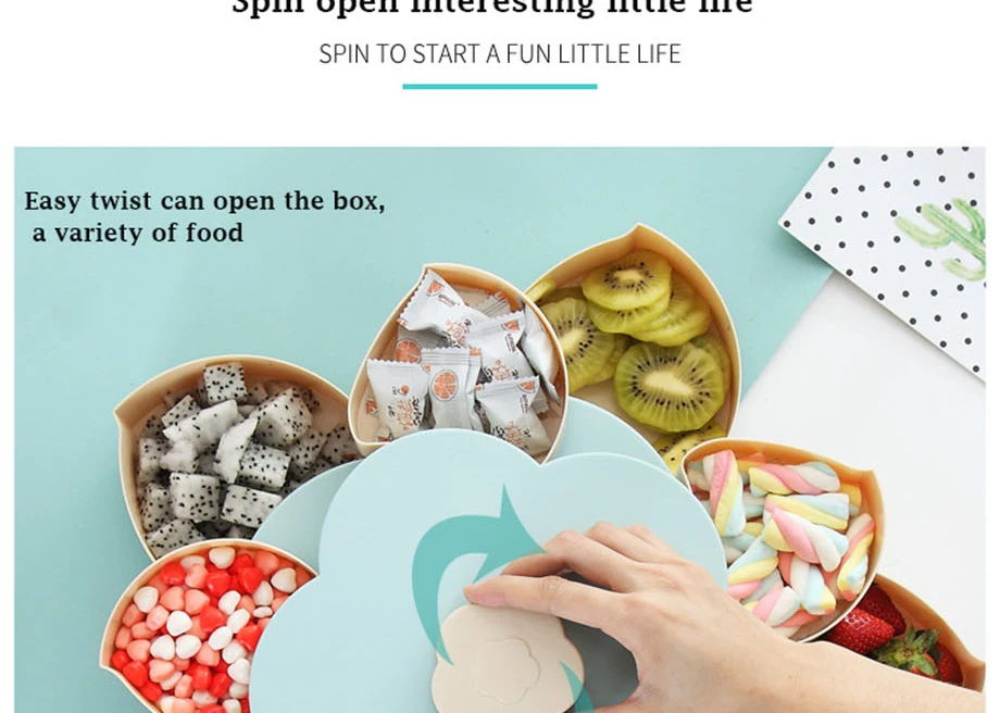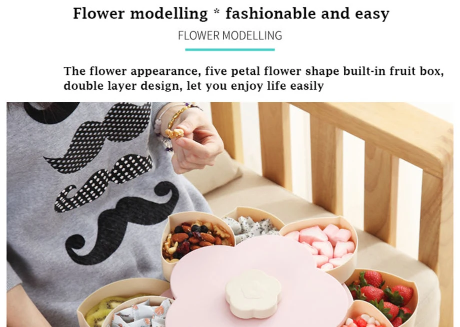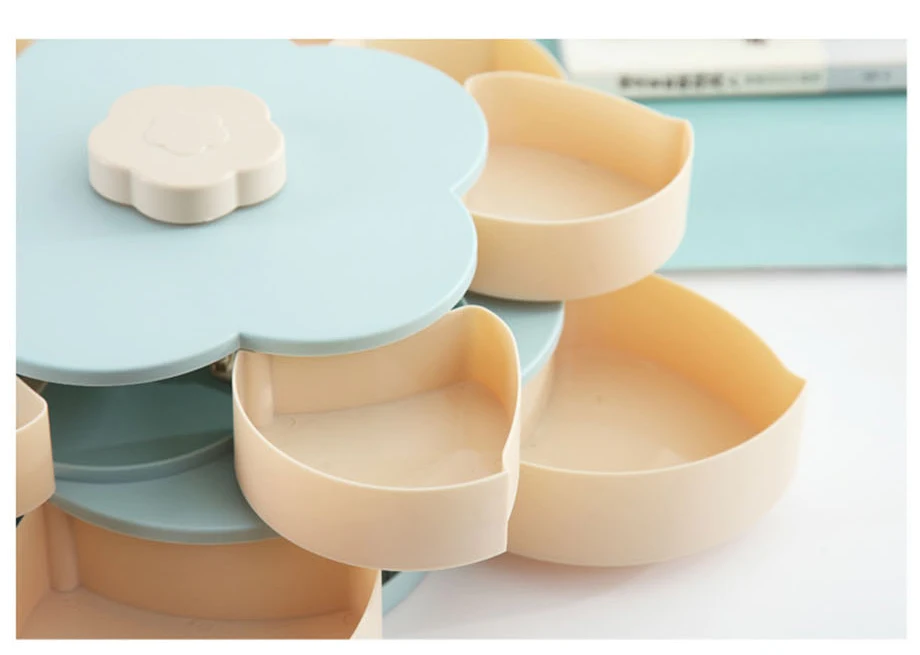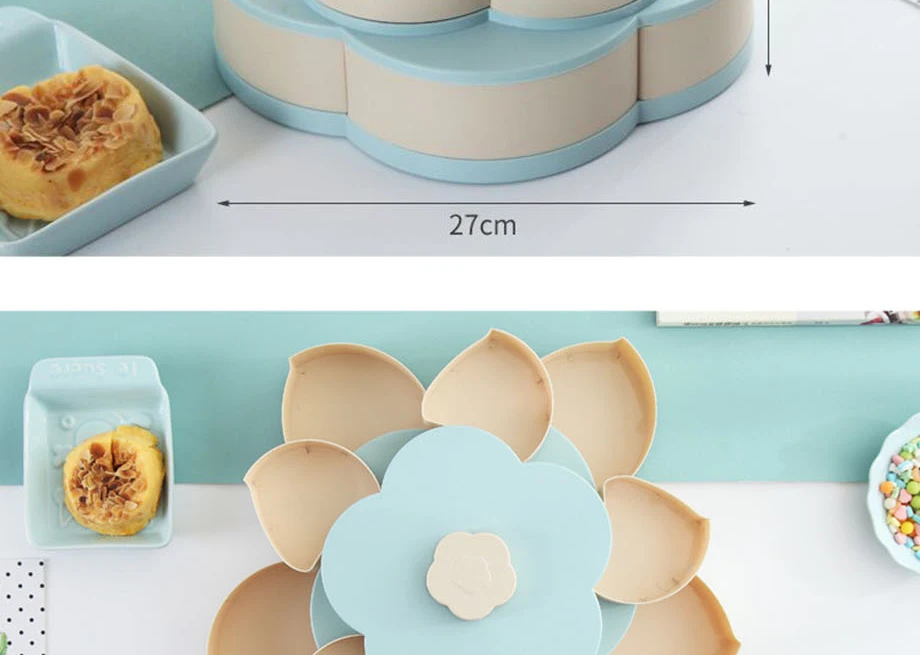 Двухслойная коробка для закусок, конфетные тарелки в форме лепестков, вращающиеся лотки, пластиковая коробка для ленивых фруктов, блюдо для сухофруктов, органайзер для хранения