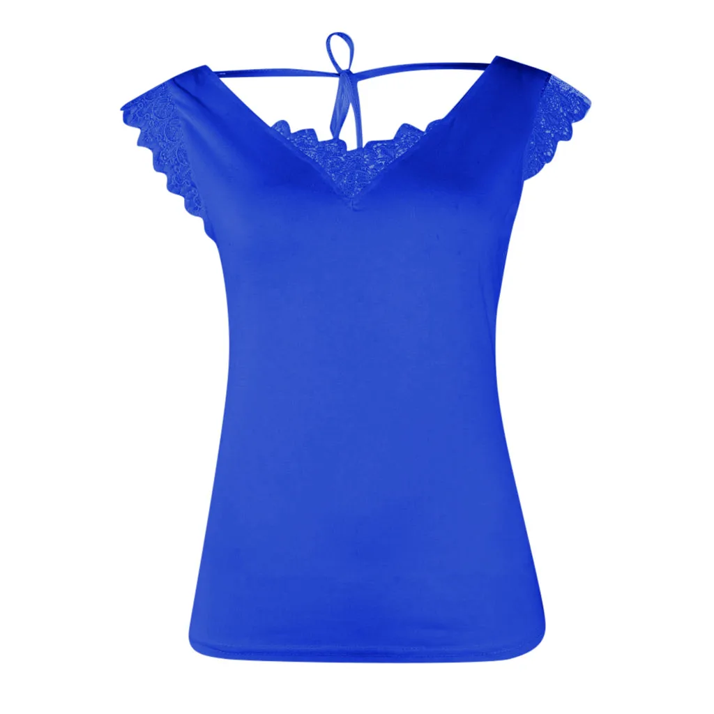 Женское летнее сексуальное повседневное с v-образным вырезом Кружевная блузка без рукавов