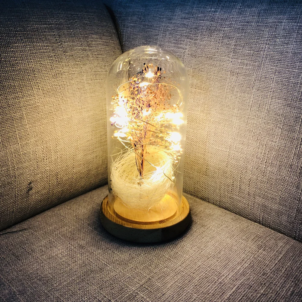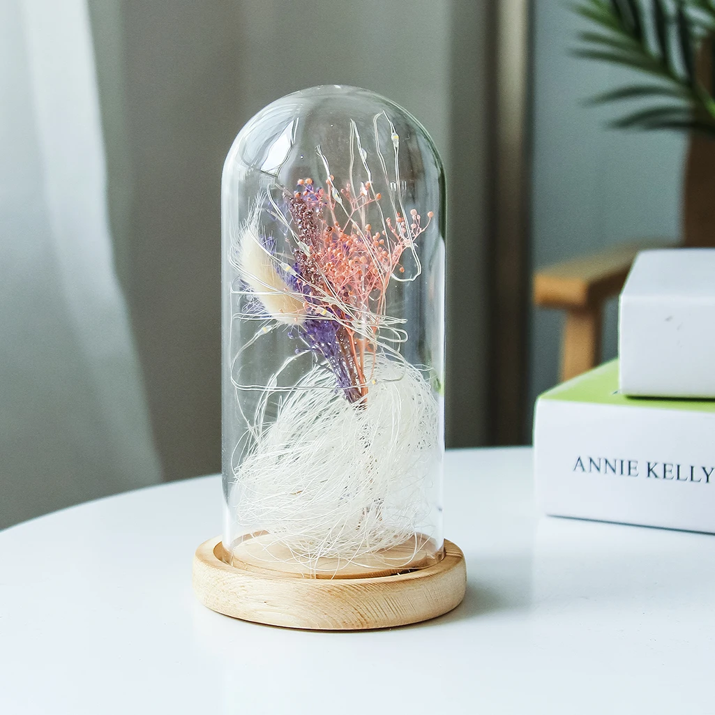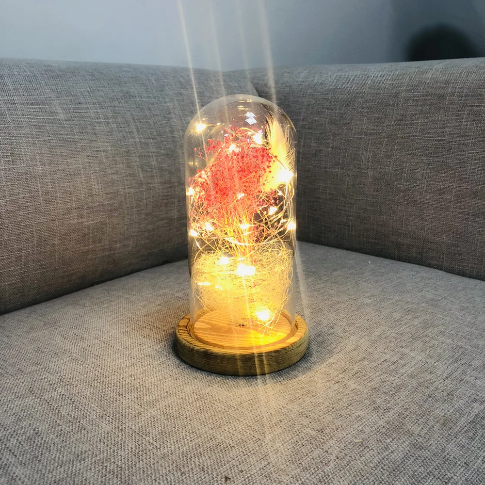 Светодиодный ленточный светильник со стеклянным абажуром, креативная романтическая атмосфера для влюбленных.1 х штИскусственные цветы со стеклянной крышкой
