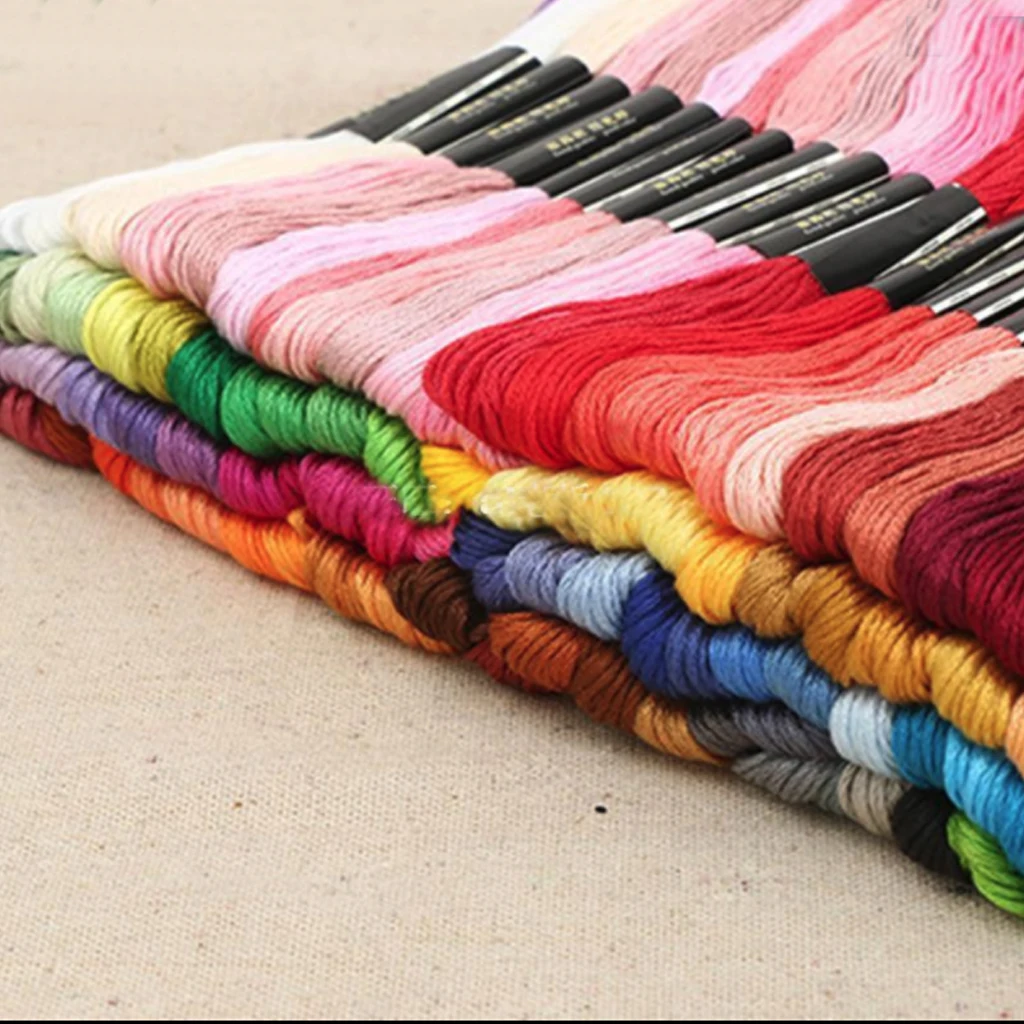 100 разных цветов. Используется для поперечной иглы, ручной работы и общего шитья.