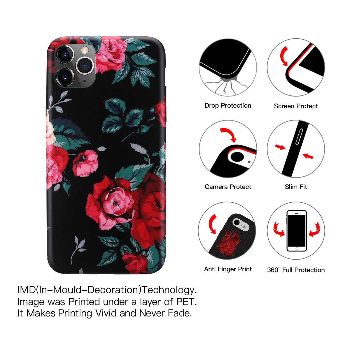 Netarlier красивый чехол для телефона с красной розой для iPhone11 11 Pro Max 7Plus 8 XR XsMax ix хорошее качество защитный толстый IMD мягкий матовый черный чехол