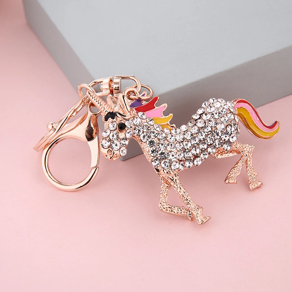 1 шт. брелок в форме единорога Стразы инкрустированные мода мультфильм брелок Рюкзак кошелек кулон