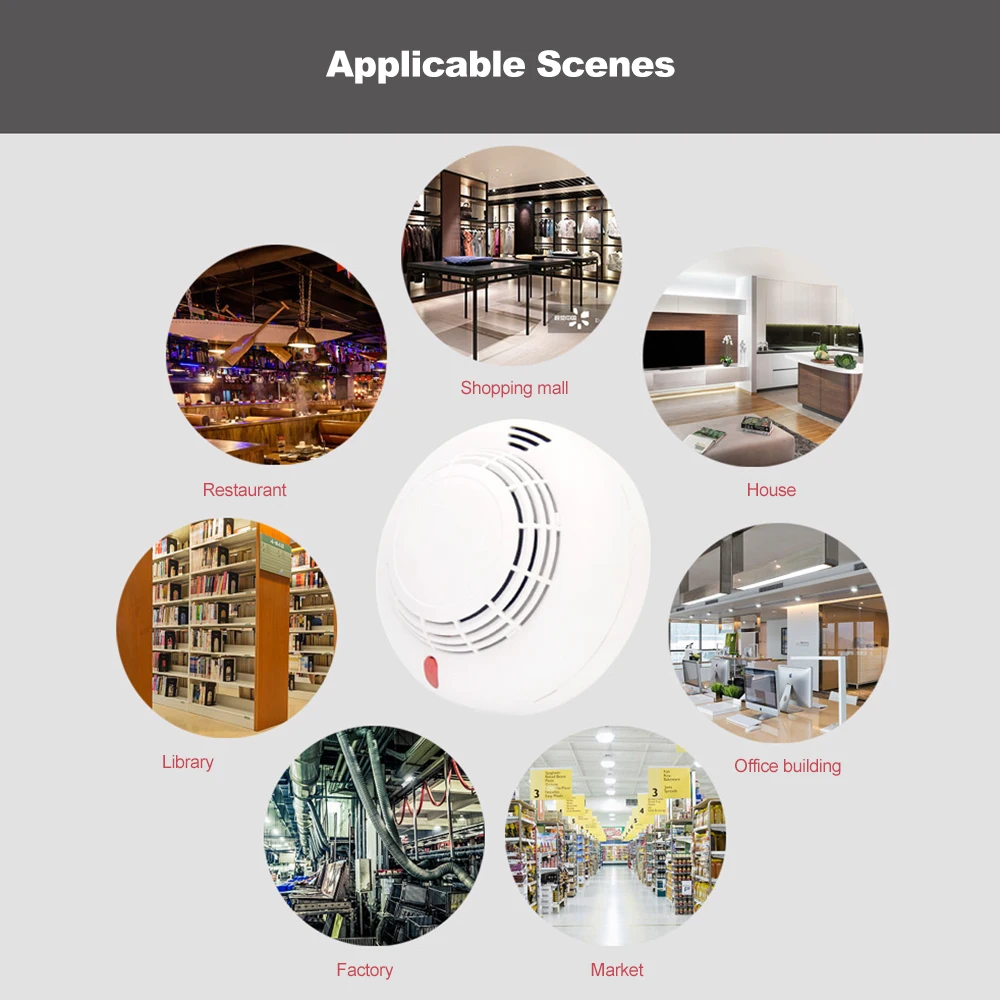 Подходит для пожарной сигнализации дома, фабрики, торговые центры, гостиницы, рестораны, офисные здания, банки, библиотеки, склады и т. Д.