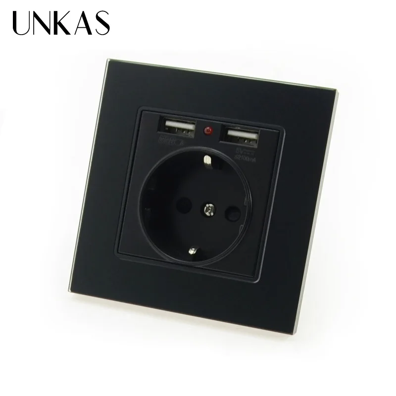 Настенное зарядное устройство UNKAS с двумя USB-портами и зарядным устройством, 2 А