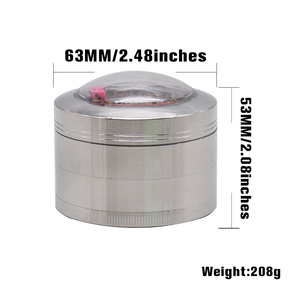 Материал: высококачественный цинковый сплав Диаметр: 63 мм/2,48 дюйма Высота: 53 мм/2,08 дюйма Вес нетто: 208 г/шт. Цвет: серебристый (как на фото) Слоев: 4 шт Зубы: острые алмазные зубы Использование: для резки табака Дизайн: травяная мельница с играми в кости
