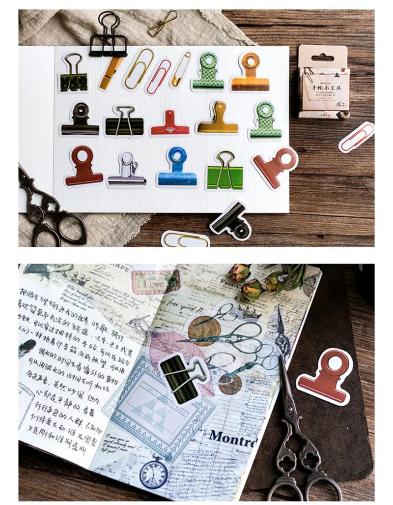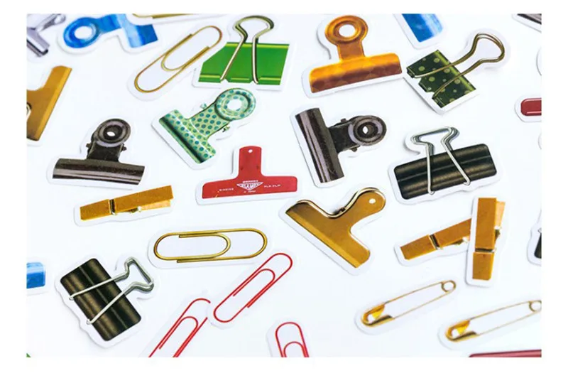 Моделирование гаджет в форме этикеток клейкая этикетка дневник, ручная работа, украшение для альбома наклейки канцелярские принадлежности 45 шт./кор. Материал: мелованная бумага Размер коробки: 4,4*4,4*1,1 см Вес: около 12 г Количество: 45 шт./кор. Форма: металлические зажимы, Длинные зажимы для хвоста, бумажные зажимы, деревянные зажимы, булавки