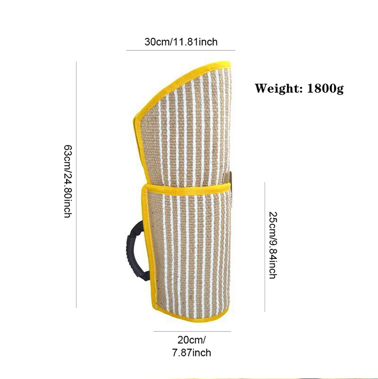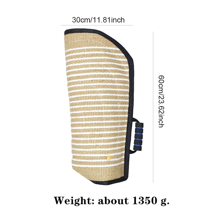 Он изготовлен из джутового материала и защищает руку от укусов собак.