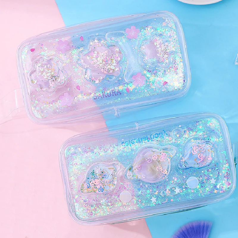 Прозрачная Сумка-карандаш из ПВХ с цветком вишни, большая косметичка
