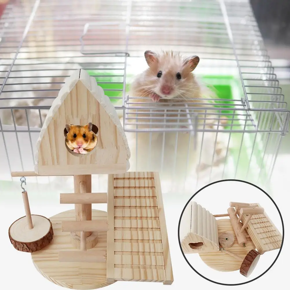 Дом для хомяка, прочная, без запаха, деревянная хижина, натуральная, деревянный замок, маленькая игровая площадка для животных, для хомяка, морской свинки
