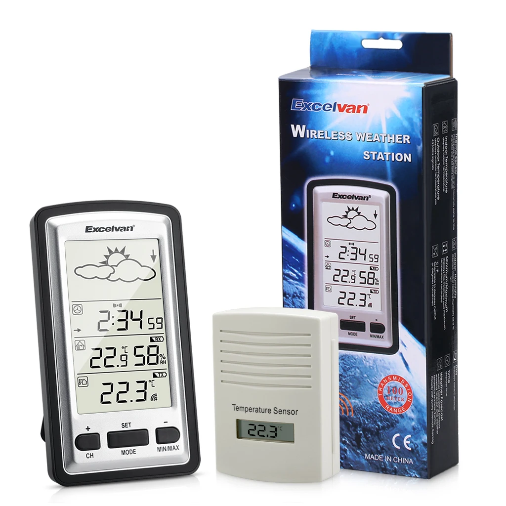 Excelvan Цифровая беспроводная метеостанция-мониторы внутренней и наружной температуры мин./макс.. Метеостанция Great Garden