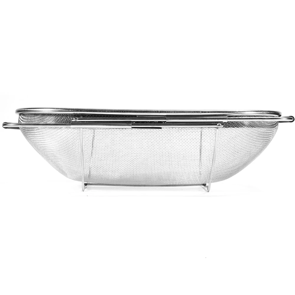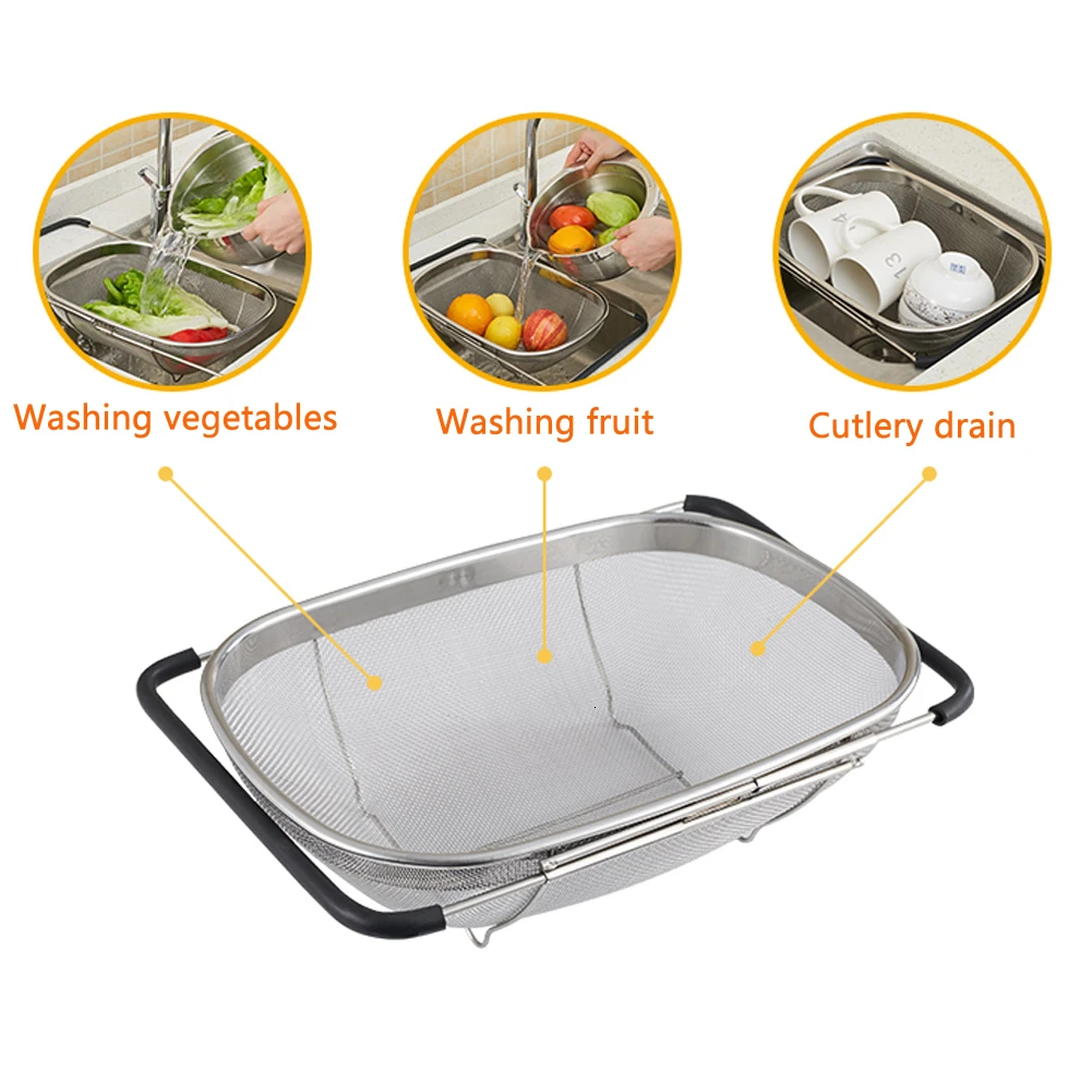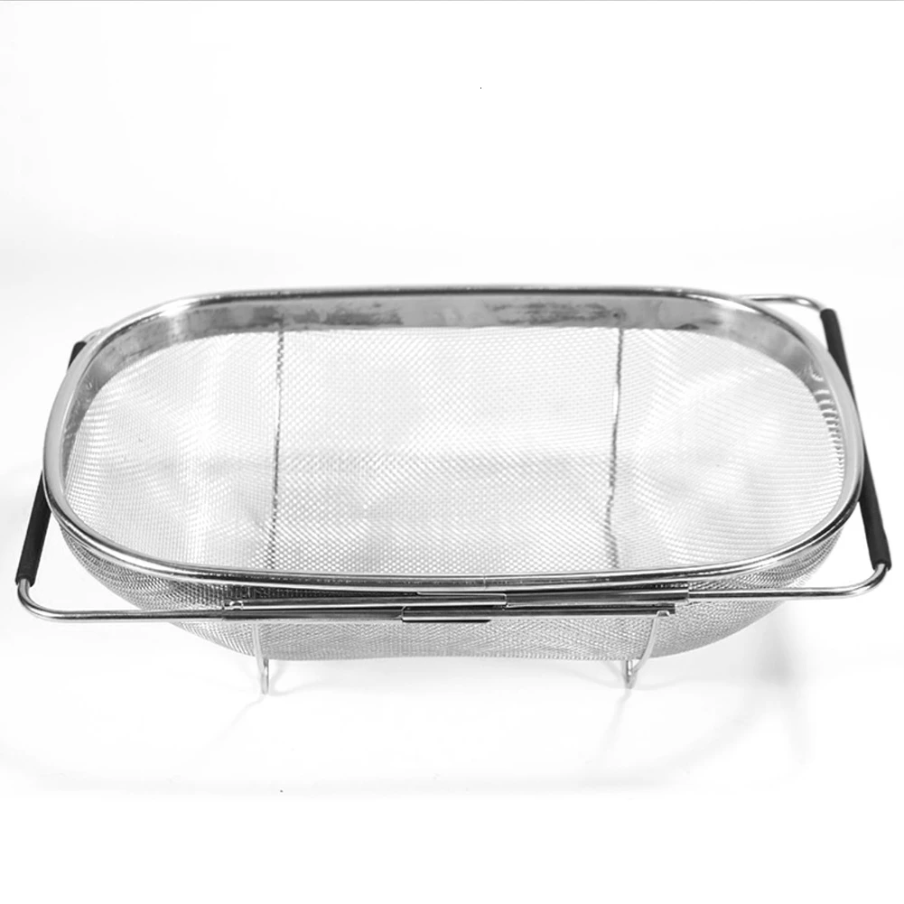 Характеристика:1. Многофункциональная Корзина для слива: идеально подходит для мытья риса и промывки макарон. Его можно использовать как сито для фруктов и овощей, и даже как корзина для фруктов. 2. Выдвижная Ручка: ручка изготовлена из силиконового материала, который не скользит. Ручка также имеет расширяемую функцию, которая может быть подходит для различных размеров раковин или умывальника. 3. Прочный и долговечный: Изготовлен из высококачественной нержавеющей стали, фильтр устойчив к коррозии, коррозии и имеет длительный срок службы. 4. Стабильное Основание: Высокая ножка имеет лучшую несущую способность и изоляцию от столешницы, поэтому сетчатый фильтр-это здоровье и гигиена. 5. Плотная сетка: корзина для слива имеет сверхплотную сетку, чтобы предотвратить прохождение пищи, а также добиться быстрого слива.Характеристики:Материал: нержавеющая сталь Размер: около 34*24*10 см/13,4*9,4*3,9 дюймовУпаковочный лист:1 * корзина для слива