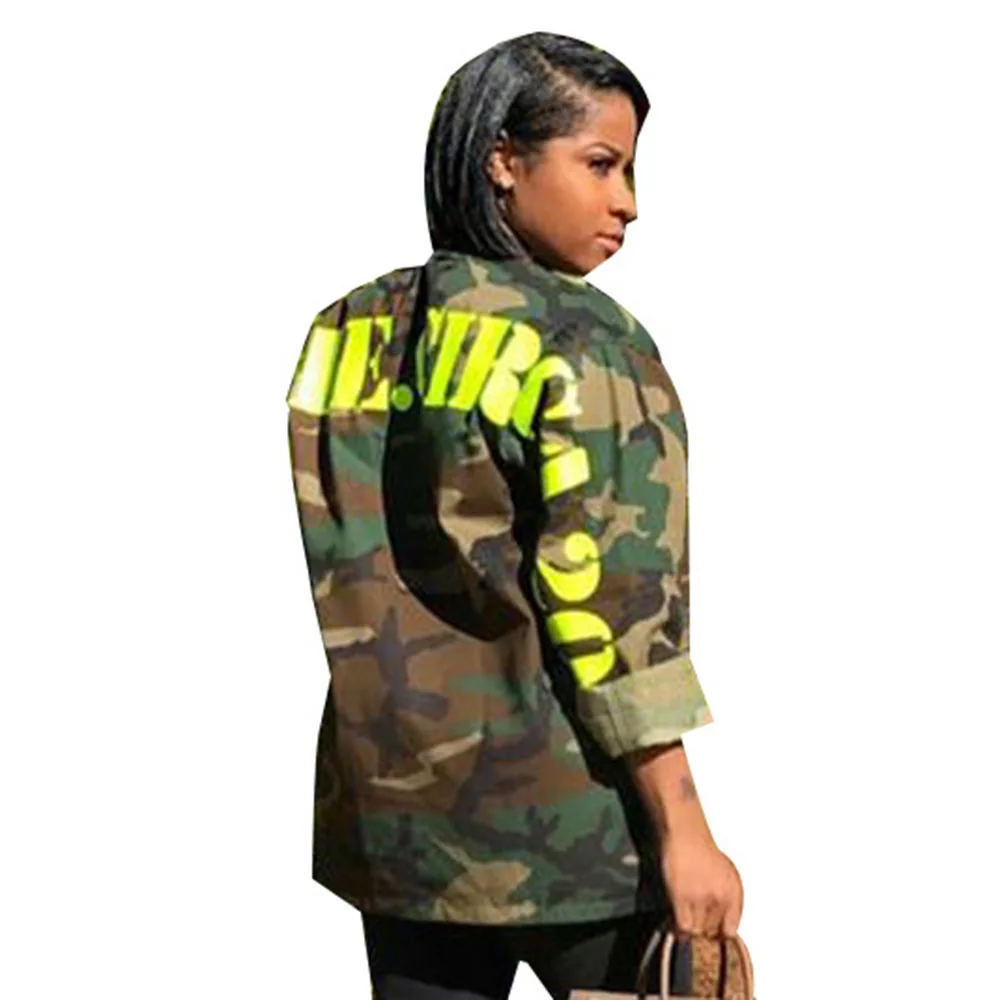 Осенняя камуфляжная Осенняя Куртка женская модная уличная армейская Военная Повседневная куртка с буквенным принтом карго размера плюс куртка-бомбер