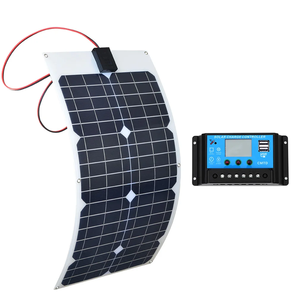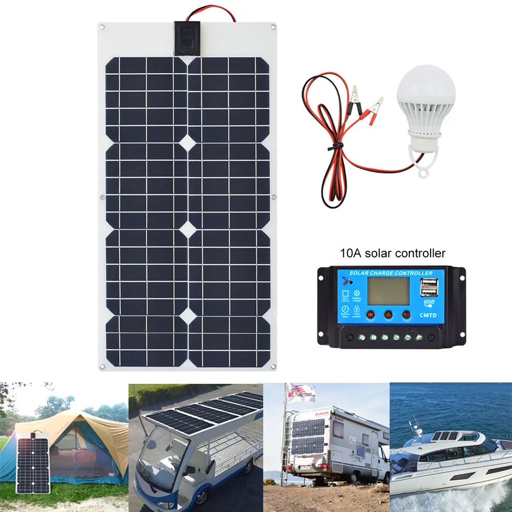 Солнечная панель с кабелем, 1x50 Вт 1X Солнечный контроллер (10/20 А) 5w 12v светодиодный светильник