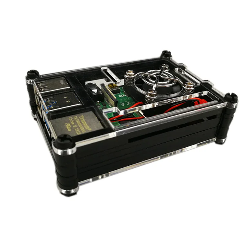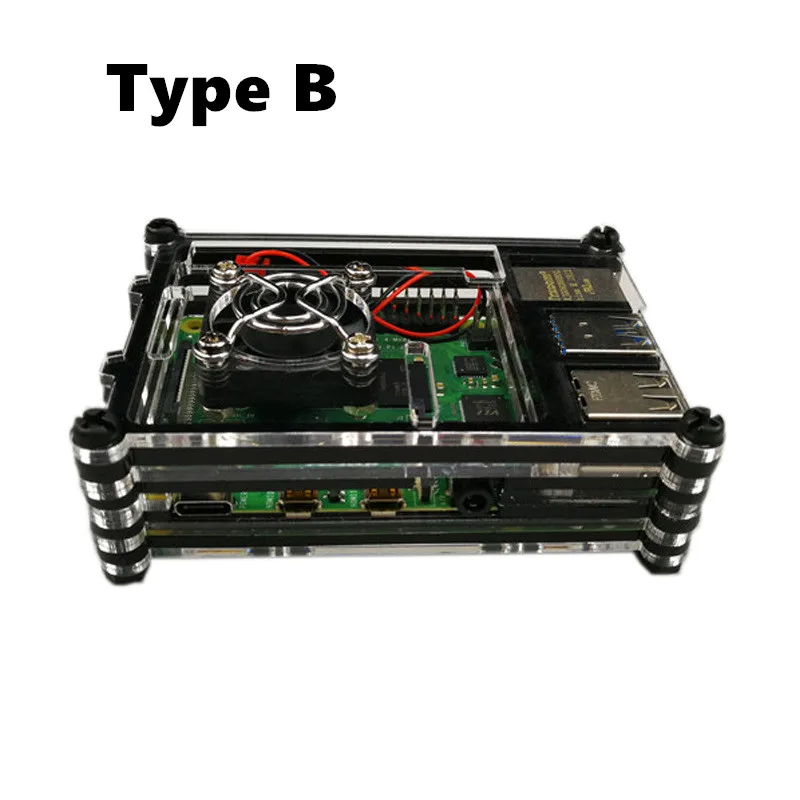 Raspberry Pi 4B акриловый чехол, новинка, 9 слоев, Raspberry Pi, 4 Чехол, коробка, черный корпус + охлаждающий вентилятор для Raspberry Pi 4 Model B