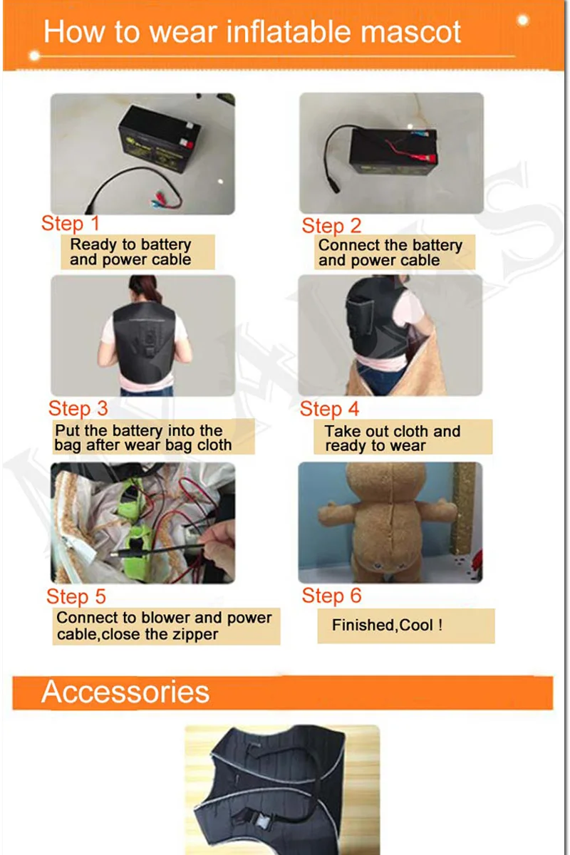 Материал изделия: супер мягкая ткань Размер продукта: Подходит для взрослых от 1,55 м до 1,88 м Высота: около 2 м после надувания Комплект товара: одежда и воздуходувка (необходимо использовать 1 шт. 12 В батареи и не включать батарейки) Упаковка: 50x50x50 см Вес: около 6 кг Время доставки: обычно требуется от 10 до 15 дней, поэтому мы отправим его через 10-15 дней после получения оплаты! Подходящий объем: компания, бар, клуб, вечерние вечера, парк, ТВ, сеть супермаркетов, гостиничная цепь, ежегодная встреча, карнавал, церемония открытия, свадьба и т. Д.