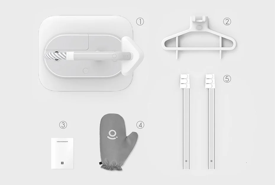 1: основной корпус продукта 2: вешалка для одежды 3: Руководство по эксплуатации 4: перчатки для защиты от ожогов 5: опорный стержень * 2