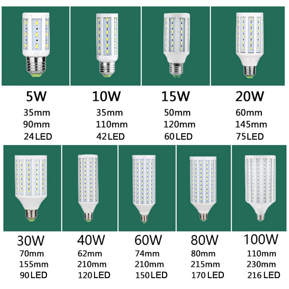 2. Номинальная мощность: 5 Вт 10 Вт 15 Вт 20 Вт 30 Вт 40 Вт 60 Вт 80 Вт 100 Вт 120 Вт 150 Вт (220-265 в/переменного тока)