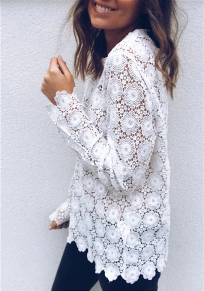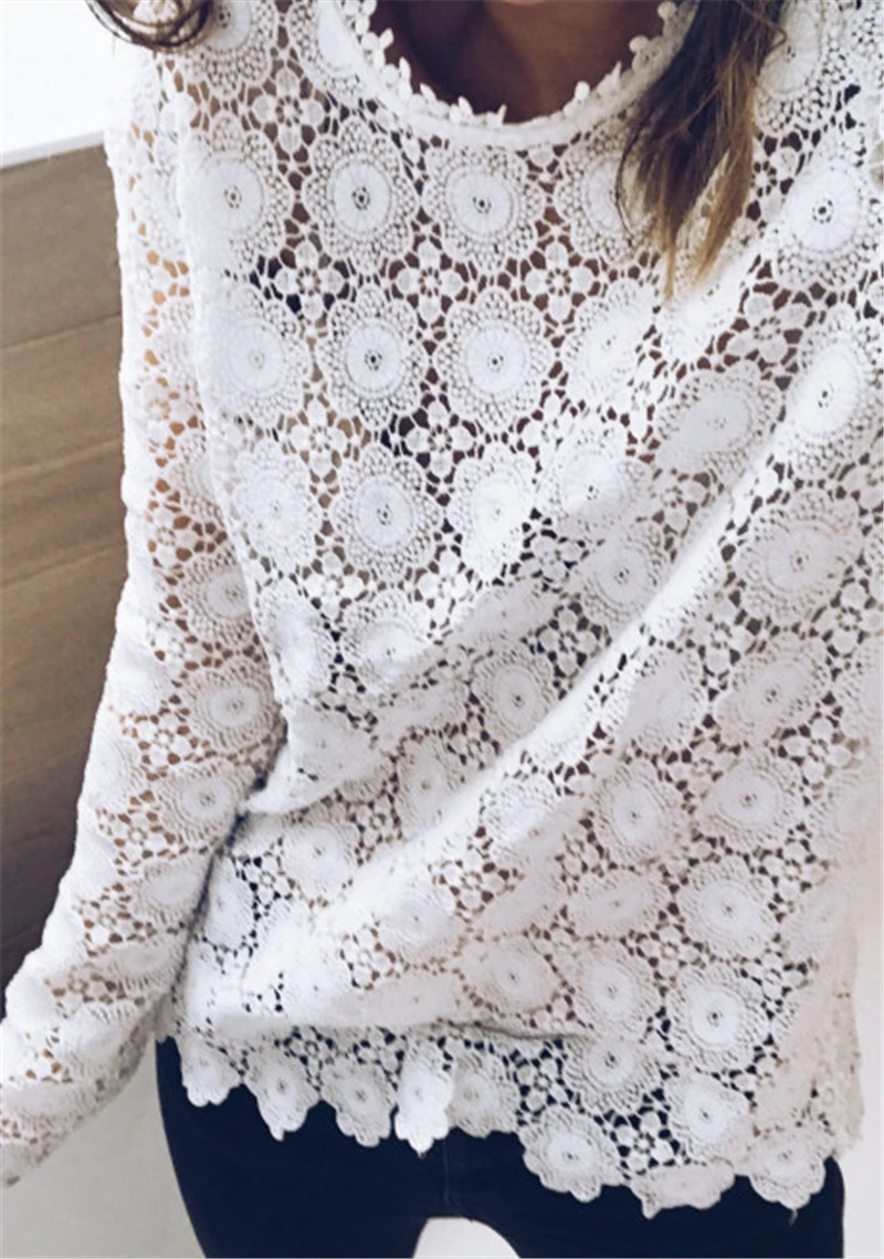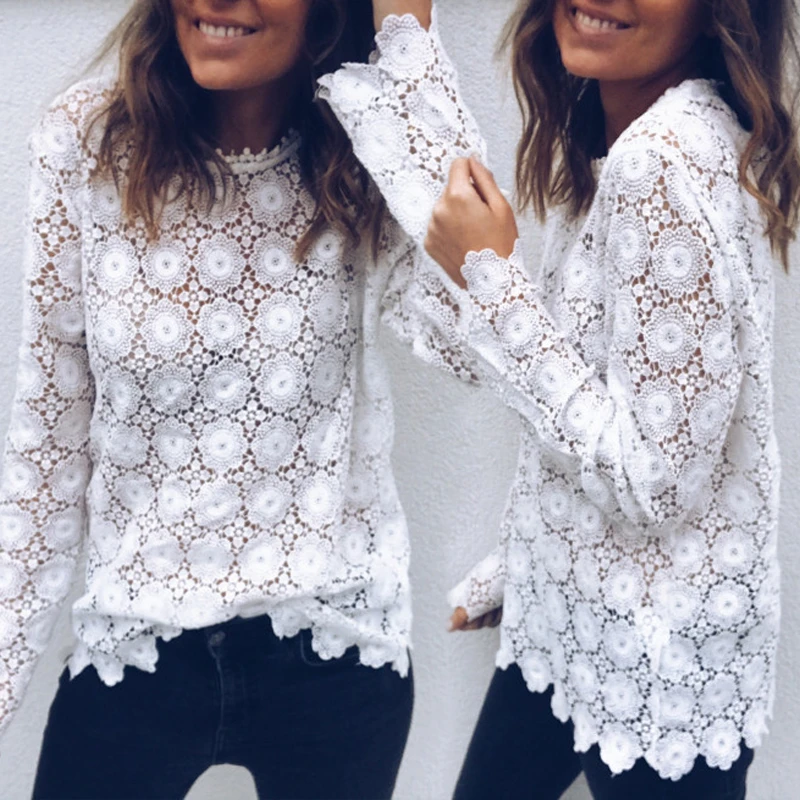 Трендовая Женская одежда, кружевной пуловер с круглым вырезом, геометрия футболки, длинный рукав, тонкий полиэстер, Женские повседневные топы, цельные