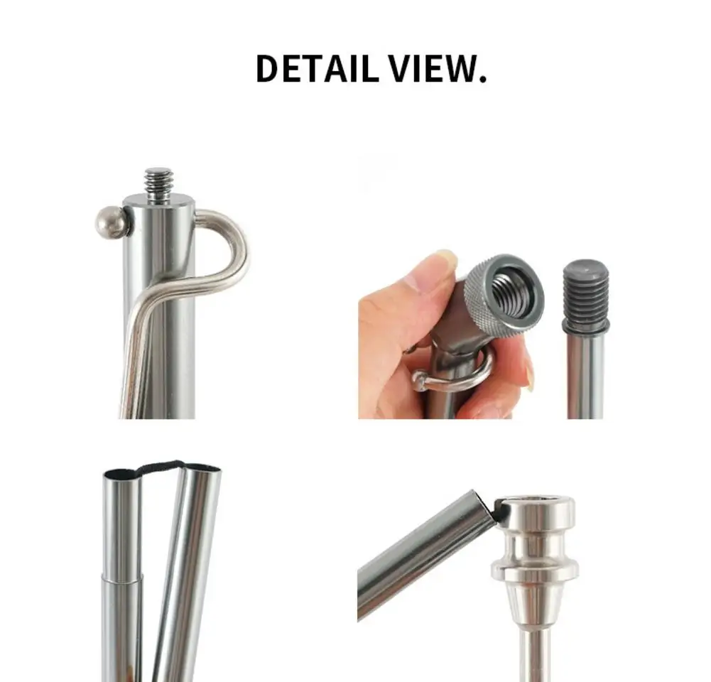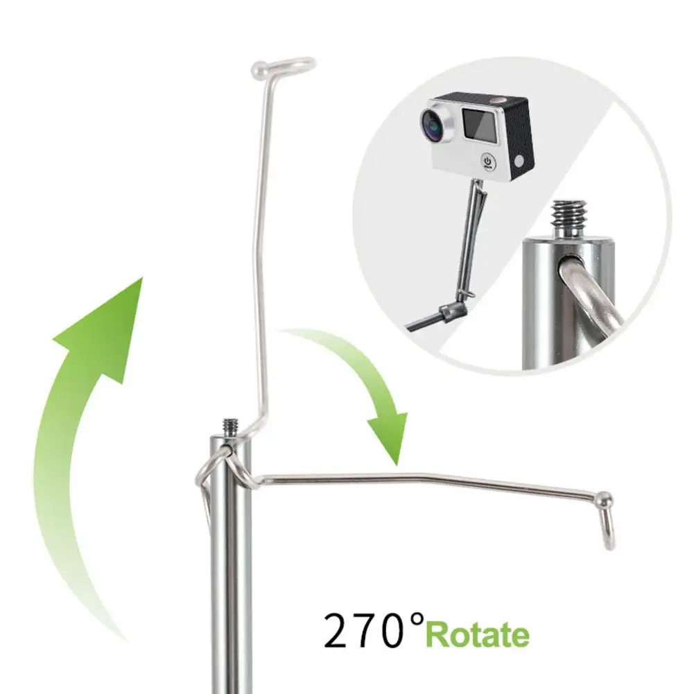 Конструкция верхней резьбы стойки позволяет установить камеру движения, а также может использоваться в качестве селфи-палки.
