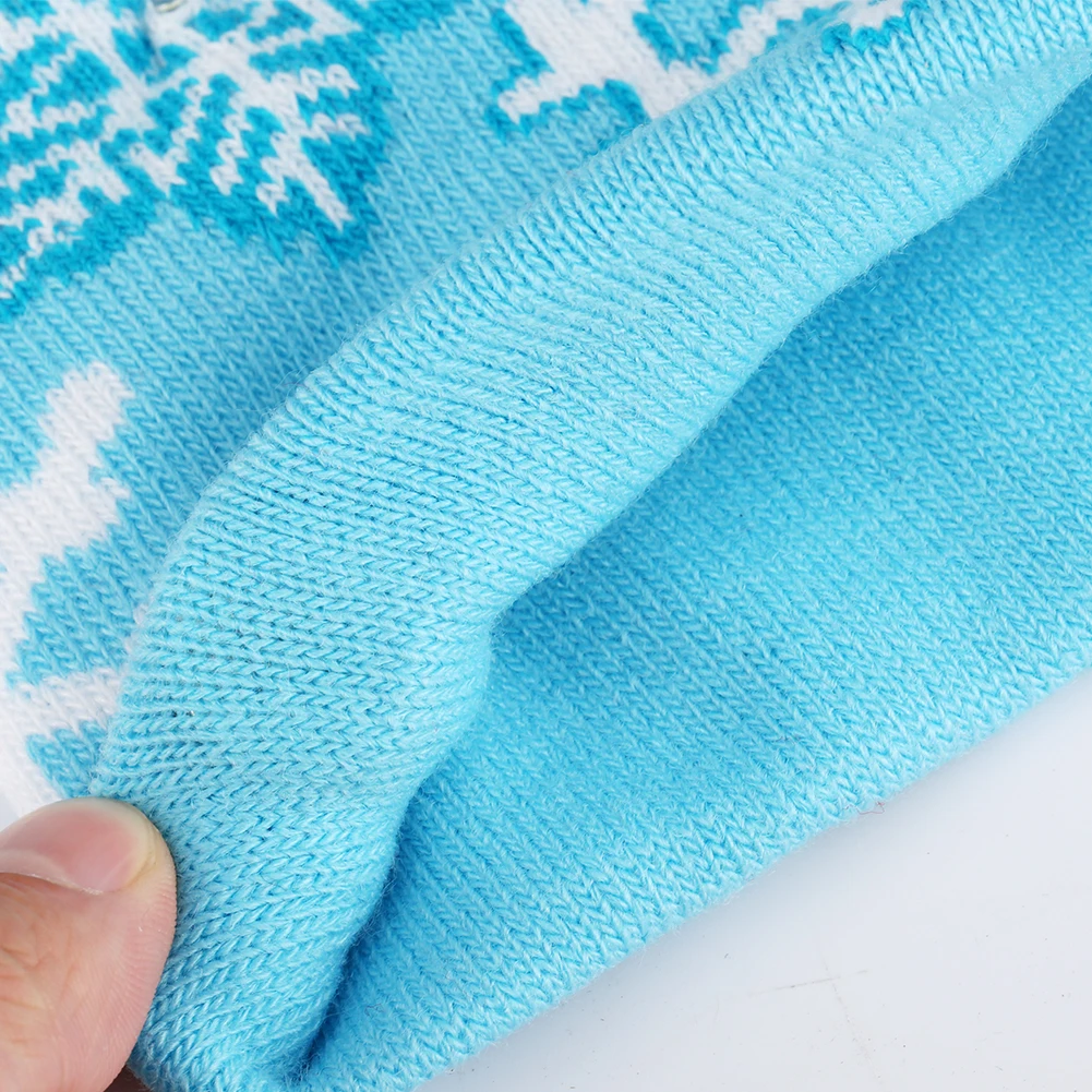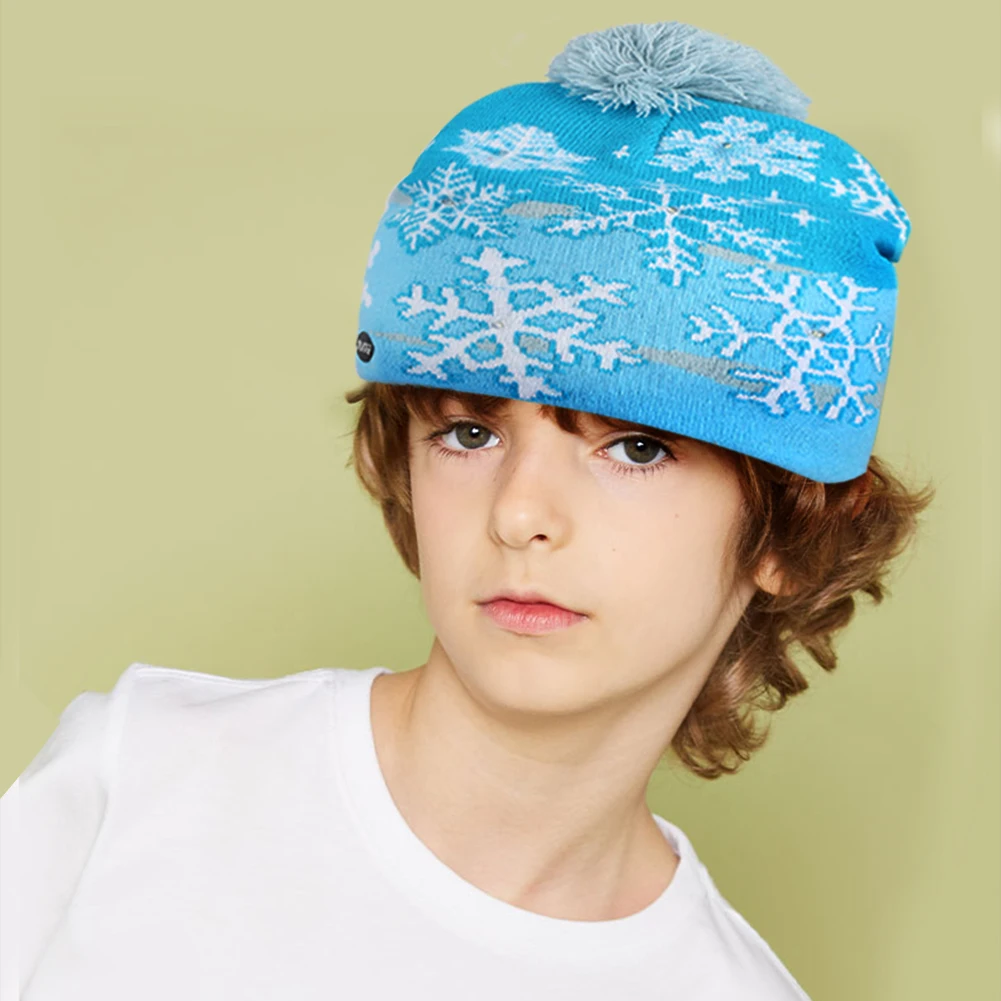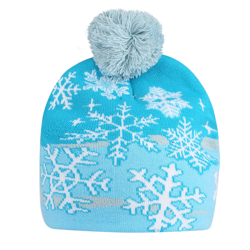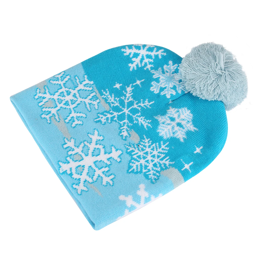 Синяя вязаная шапка со снежинками с шариком, светодиодный, белый светильник, шапка с помпоном, ослепительный светильник, рождественские шапки, шапка с черепом, Лыжная зимняя шапка s Bonnet
